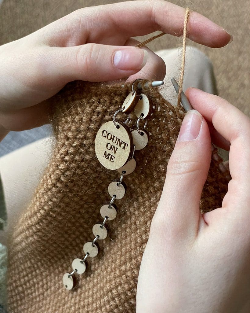 Strikkefisken er en dejlig analog hjælp – du slipper helt for at notere dine omgange på mobilen eller på papir. Så er det dejlig nemt at strikke ærmer i sofaen.