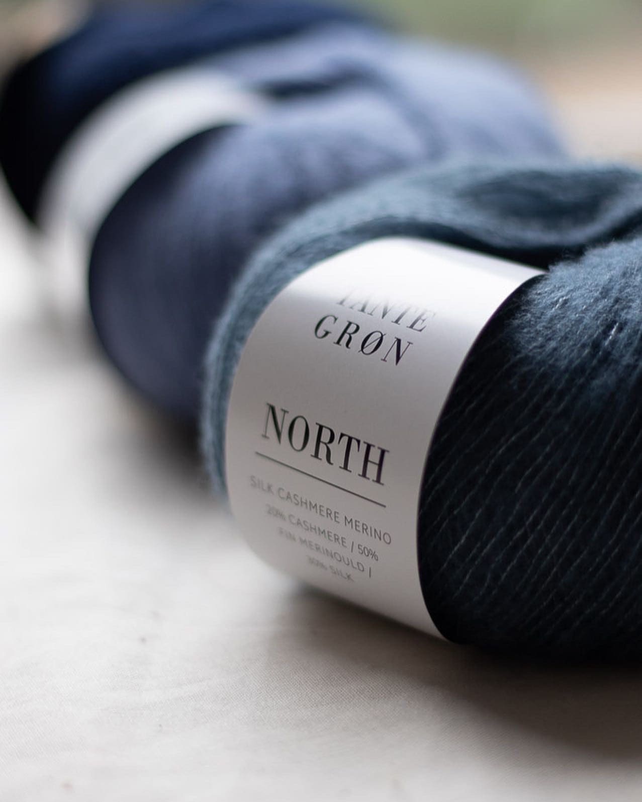 North fra Tante Grøn er et blødt og luksuriøst alternativ til Silk Mohair. North er et unikt garn, der kun bliver produceret ét sted i verden, og som giver et fjerlet og eksklusivt resultat. Den består af 50% Fin Merinould, 30% Silke & 20% Cashmere. North er dermed et godt alternativ, som ikke fælder, er smørblødt og har samme tykkelse som Silk Mohair.