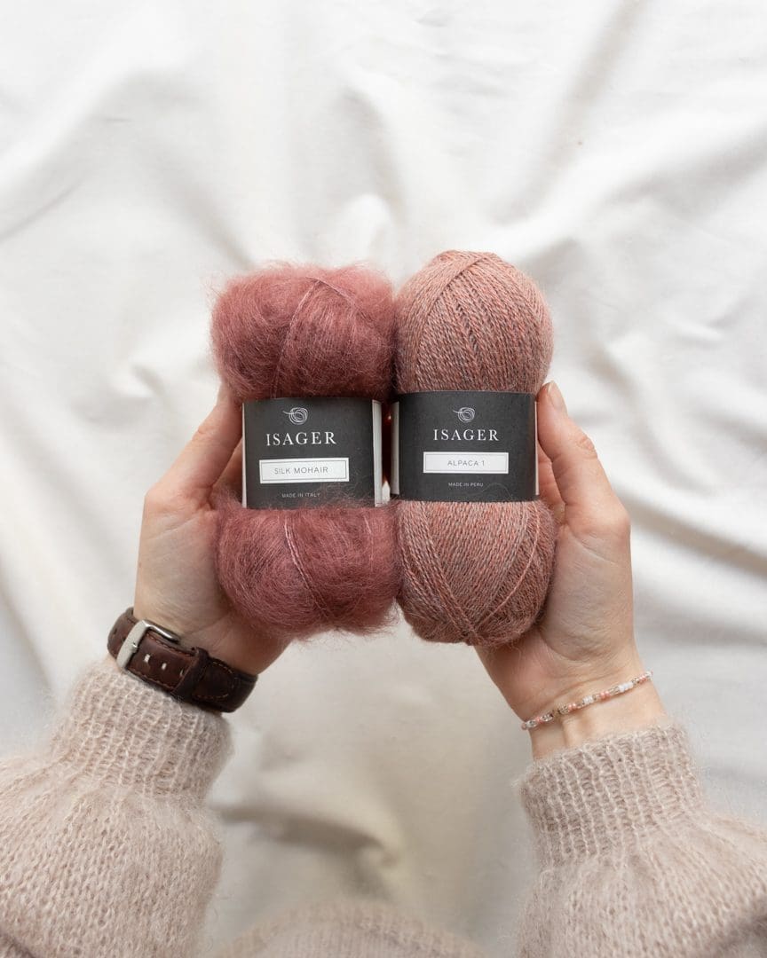 Alpaca 1 løber 400 meter, så vær opmærksom på, at du skal bruge mindre garn, hvis du erstatter Silk Mohair med Alpaca 1. Læs vores omregningsguide lige her.