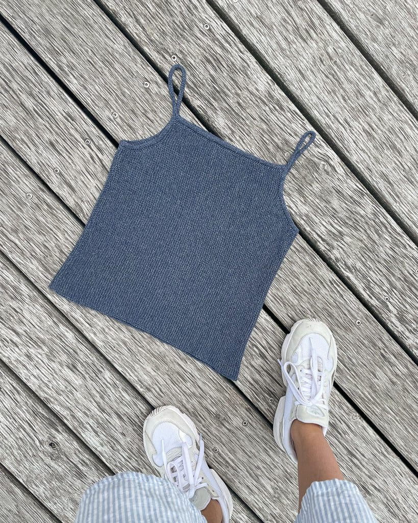 Kyst Toppen er strikket på pind nr. 3 mm i vores skønne bomuldsgarn Marble.