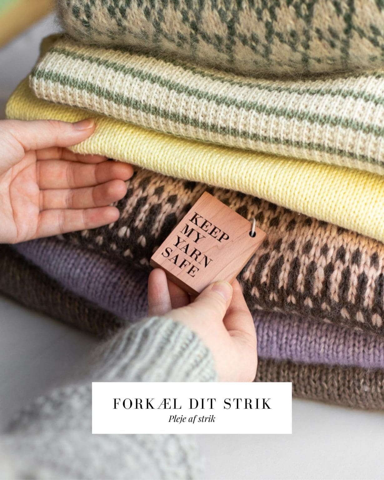 Du kan forkæle dit strik med en dejlig luftning udendørs i skyggen eller du kan sørge for, at der ikke kommer ubudne gæster ved at lægge en af Tante Grøns cedertræsblokke mellem dem.
