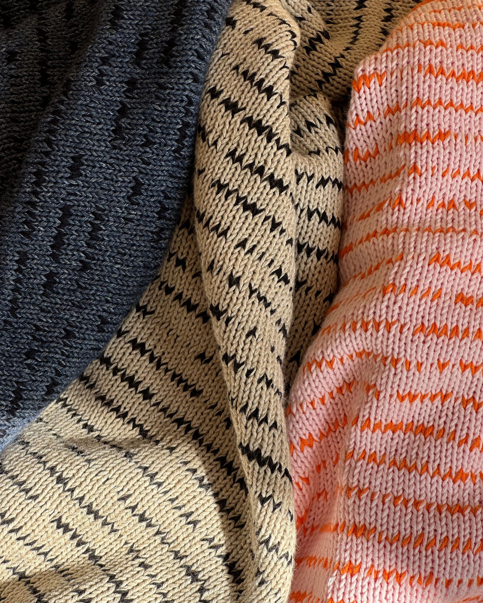 For at få det melerede mønster til at træde tydeligt frem, er det en fordel at vælge to farver med god kontrast mellem bundfarve og mønsterfarve. Det skaber et flot farvespil og fremhæver striberne på en levende og elegant måde – især når farverne får lov at arbejde med hinanden i garnets struktur.