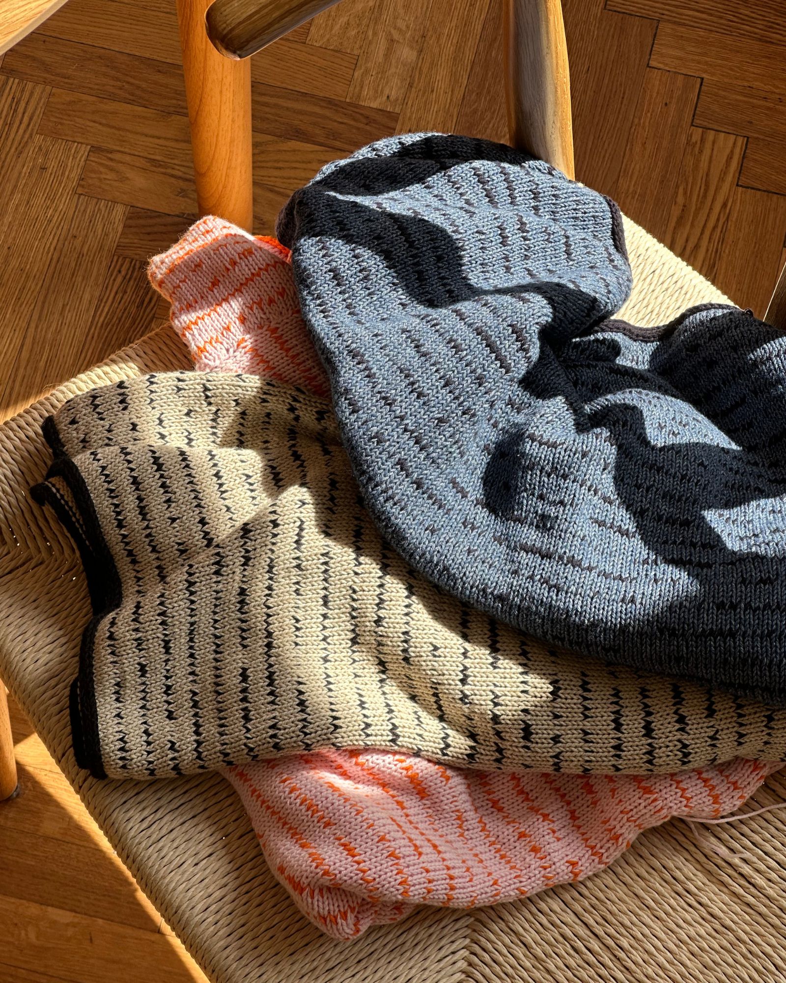 Vær opmærksom på, at når du vælger en anden garntype end den oprindelige, kan det påvirke både strukturen og udtrykket i det færdige resultat. Vi anbefaler derfor altid at strikke en strikkeprøve, så du kan justere og sikre det udtryk og den pasform, du ønsker.
