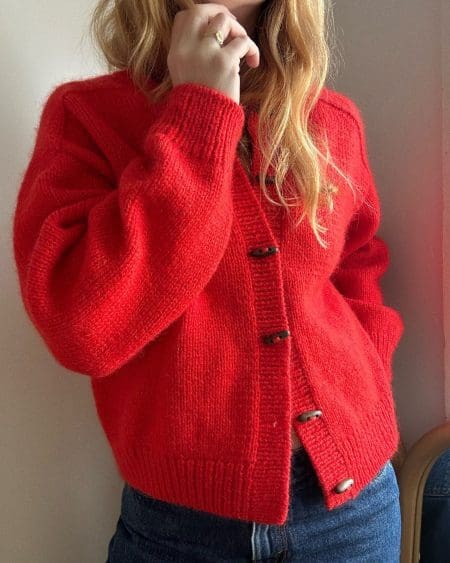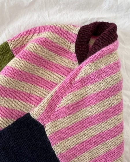 • Maggie Vest fra PetiteKnit i farve 725 Niwa fra Cardiff Cashmere.Maggie Vest fra PetiteKnit der ligger på et hvidt lagen.