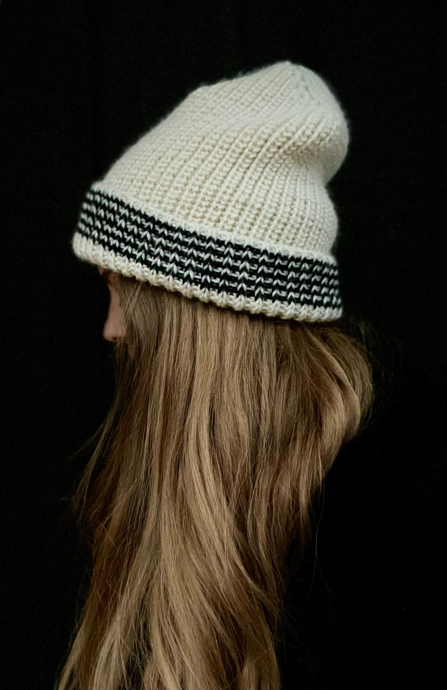 Aego beanie er en varm og klassisk beanie strikket i halvpatent. Den kan strikkes med ombuk eller uden, strikkes den med kan der tilføjes en fin stribedetalje. Opskriften er udformet således at du samtidig kan få ryddet op i garnresterne mens du laver dig en ny favorithue.