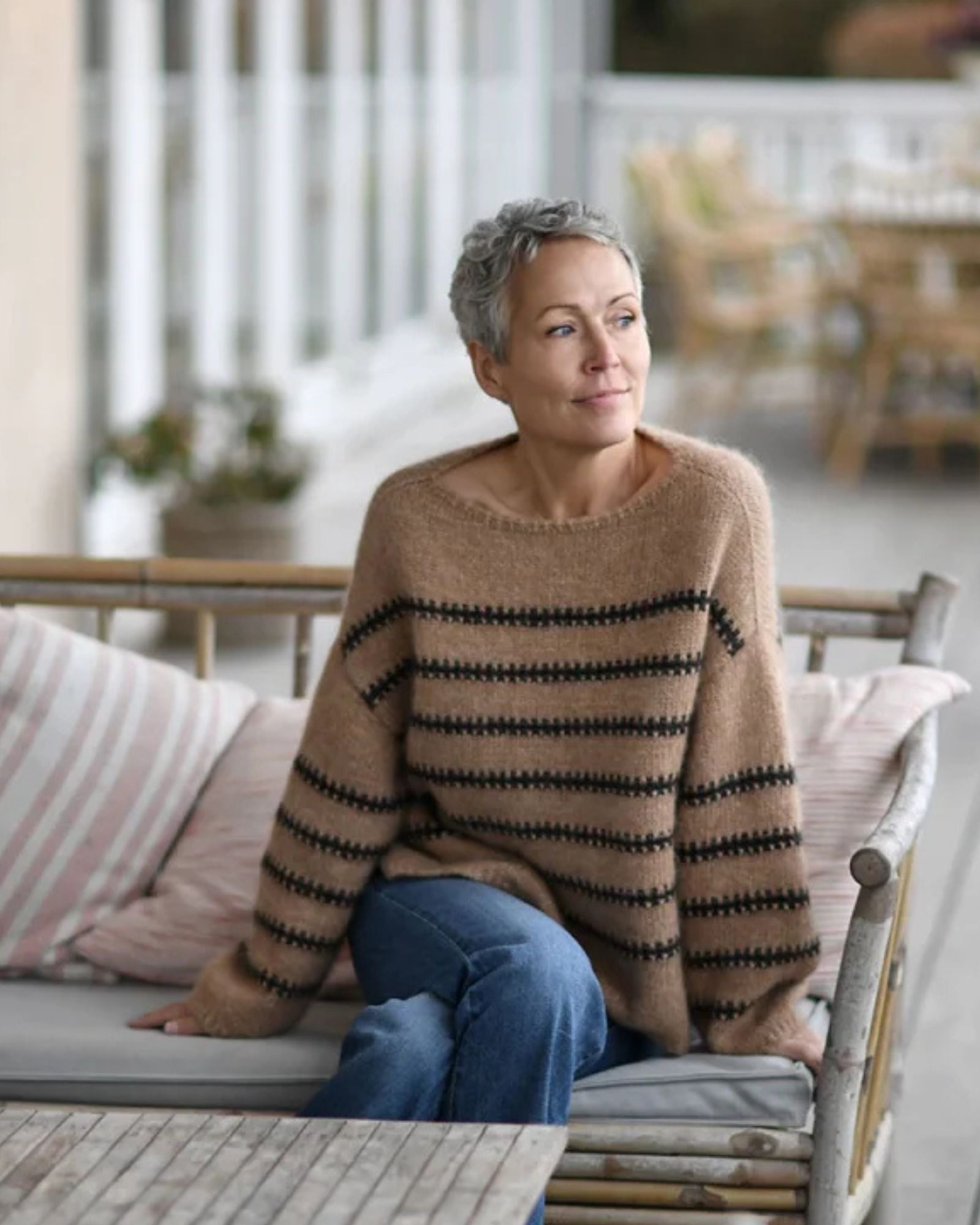 Sailor Soft er strikket i glatstrik og striberne i vævestrik. Vævestrik er en enkel teknik, der gør det muligt at strikke et flerfarvet mønster, uden at strikke med flere farver samtidig. Det betyder, at det der syner som flerfarvestrik på dette projekt, blot strikkes med én farve ad gangen, hvilket letter på sværhedsgraden. Sweateren har en enkel facon med en fremskudt skulderlinje. Sweateren strikkes oppefra og ned, og er monteringsfri. Først strikkes halsribben rundt, så strikkes der vendepinde for at forme halsudskæringen, hvorefter der igen strikkes rundt til skulderens bredde er nået. Arbejdet deles i forstykke og ryg, og hver del strikkes for sig til ærmegabets bund, hvorefter delene samles, og der strikkes rundt over alle kroppens masker. Til sidst deles arbejdet atter i ryg og forstykke, og der strikkes frem og tilbage, for at danne slidsen i siderne. Nye masker strikkes op langs ærmegabet til ærmet, hvorefter der strikkes vendepinde for at forme ærmekuplen, og herefter strikkes ærmet rundt på rundpind.