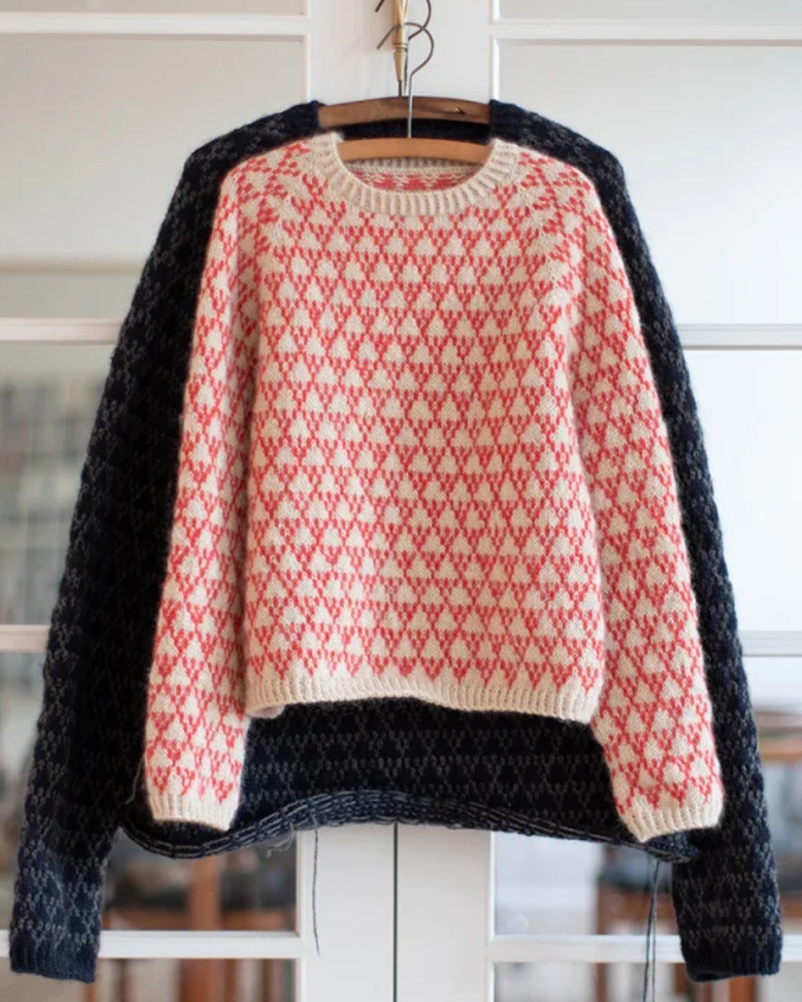 Spot Regular fra Anne Ventzel er en klassisk sweater med et enkelt mønster i to farver og detaljer i drejet rib. Spot Regular har, til forskel fra den oprindelige sweater Spot Sweater en regulær pasform og et mindre ærmegab. Jeg har strikket sweateren i to garnvarianter, en mohair version og en uld version. På grund af forskellen i elasticiteten i garnerne har de to versioner forskelligt maskeantal, og derfor findes der særskilte afsnit for hver af garnkvaliteterne i denne del af opskriften. Bemærk, at til dette kit er der valgt mohair version.