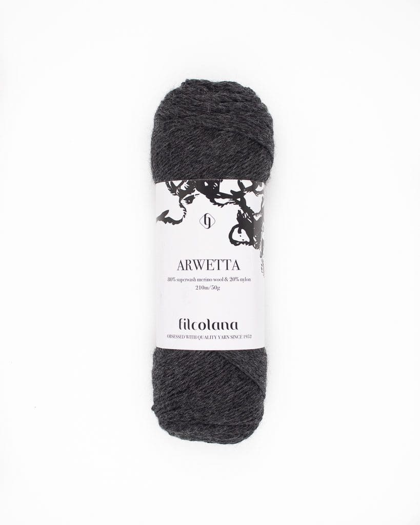Arwetta fra Filcolana er en blød 4-trådet strømpegarn, som består af 80% Merinould og 20% Nylon.