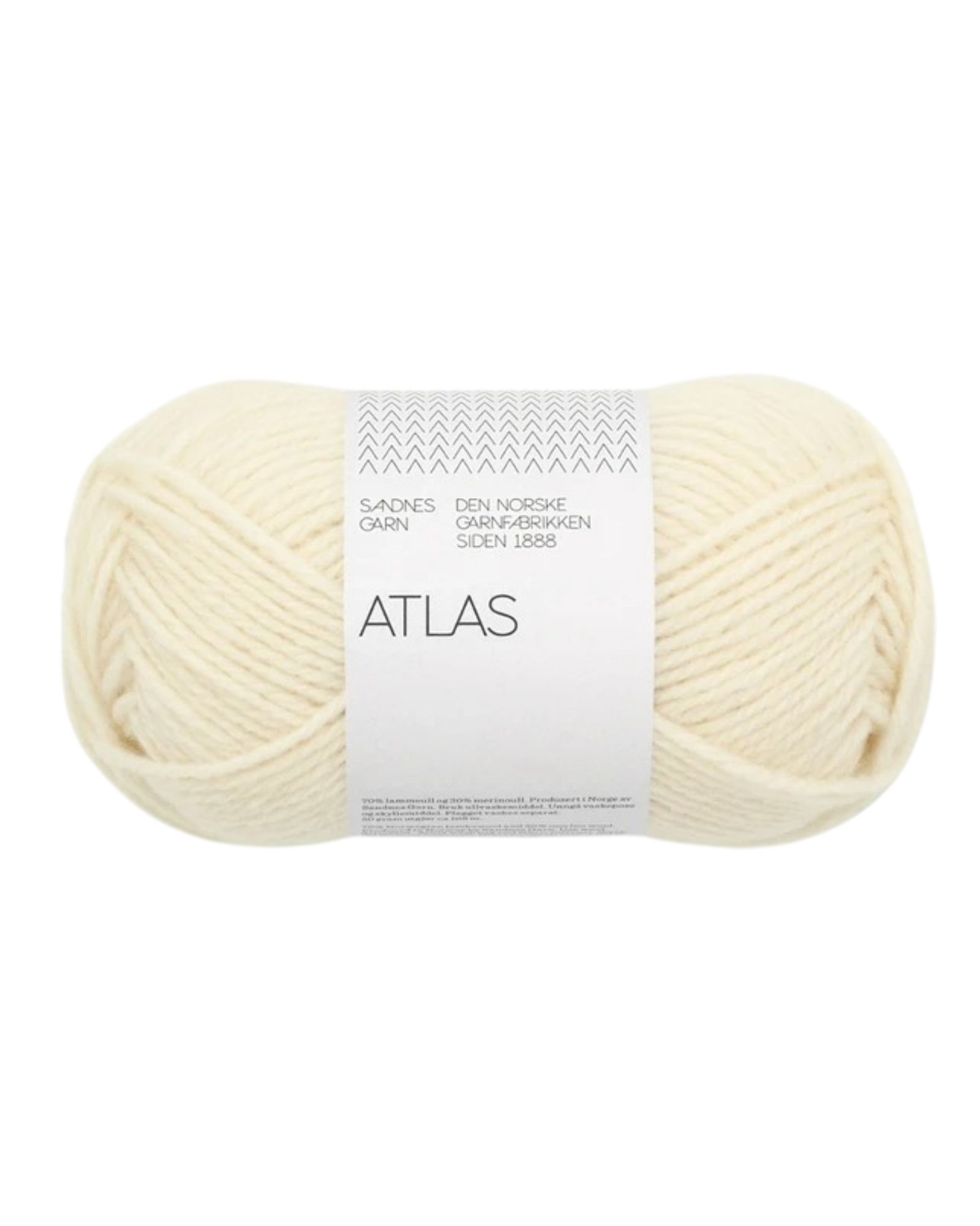 Atlas er en ny og spændende garnkvalitet fra Sandnes, som består af 70% norsk lammeuld og 30% merinould. Den kombination gør, at Atlas er god til alt fra sweatre og cardigans til lune huer, halstørklæder og vanter.