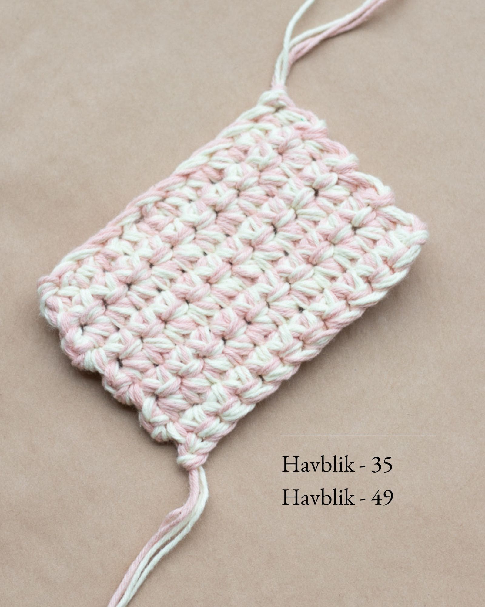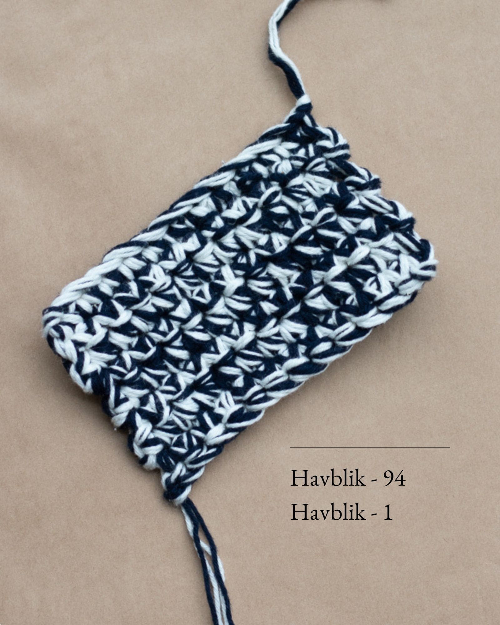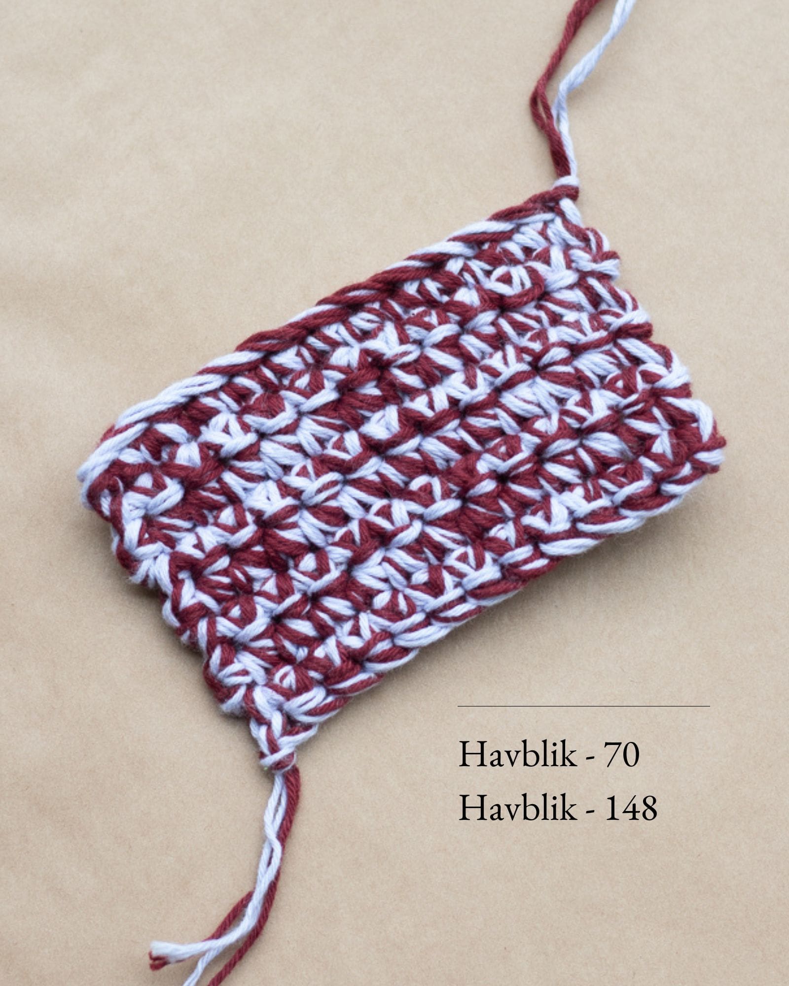 Den brune og råhvide Boxy Bag er hæklet i Havblik. 2 tråde af farven 17 Brown og 2 tråde 01 Natur.