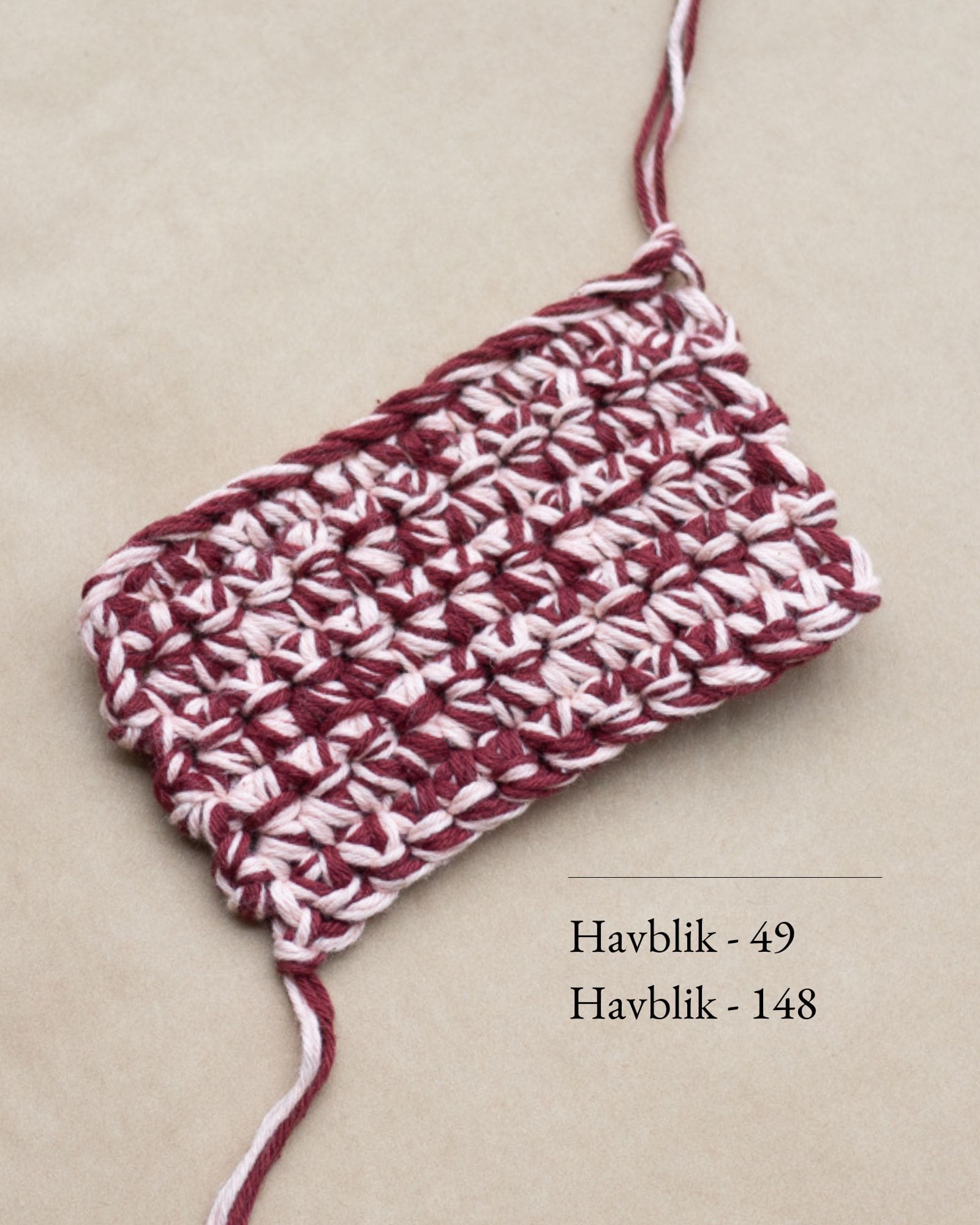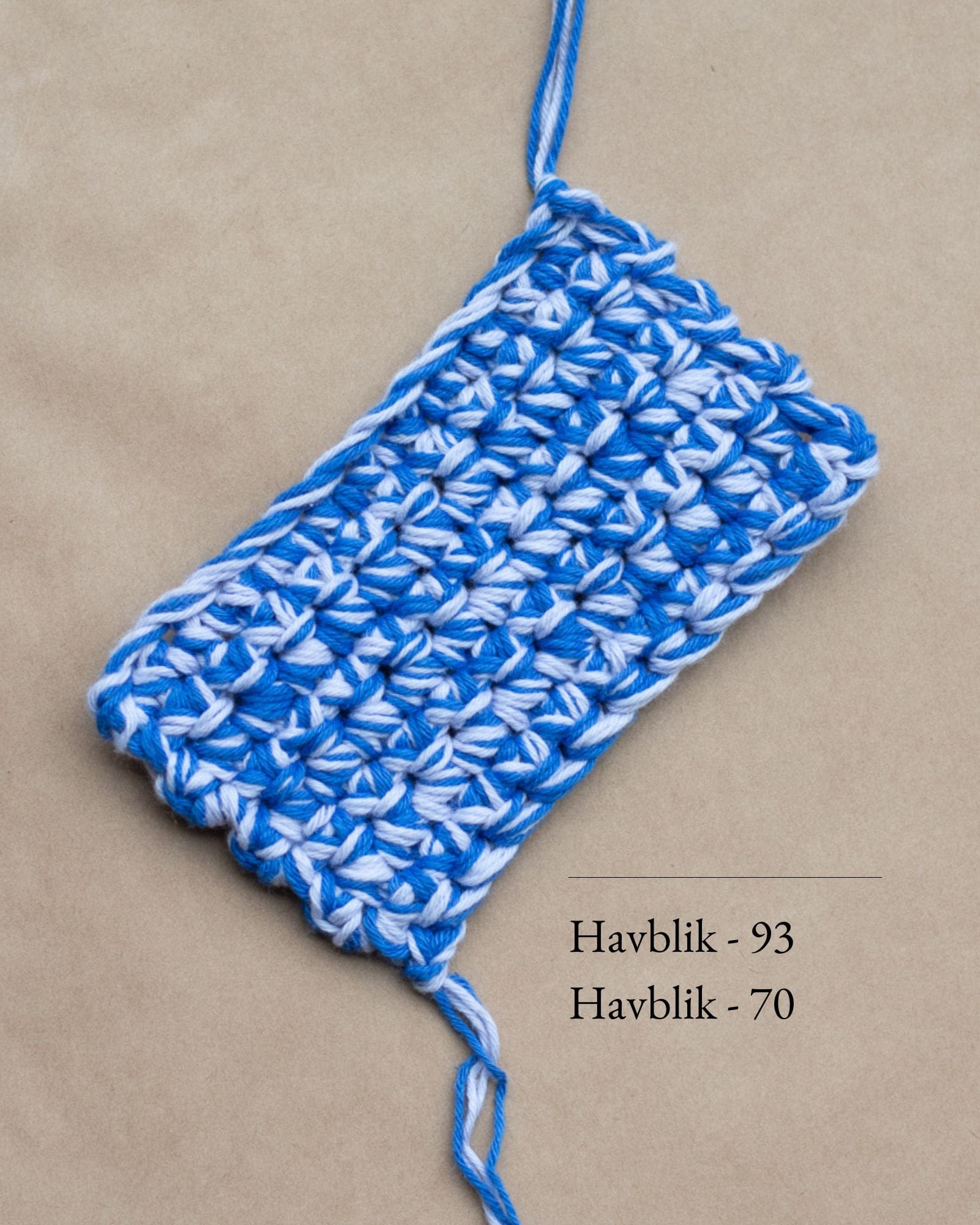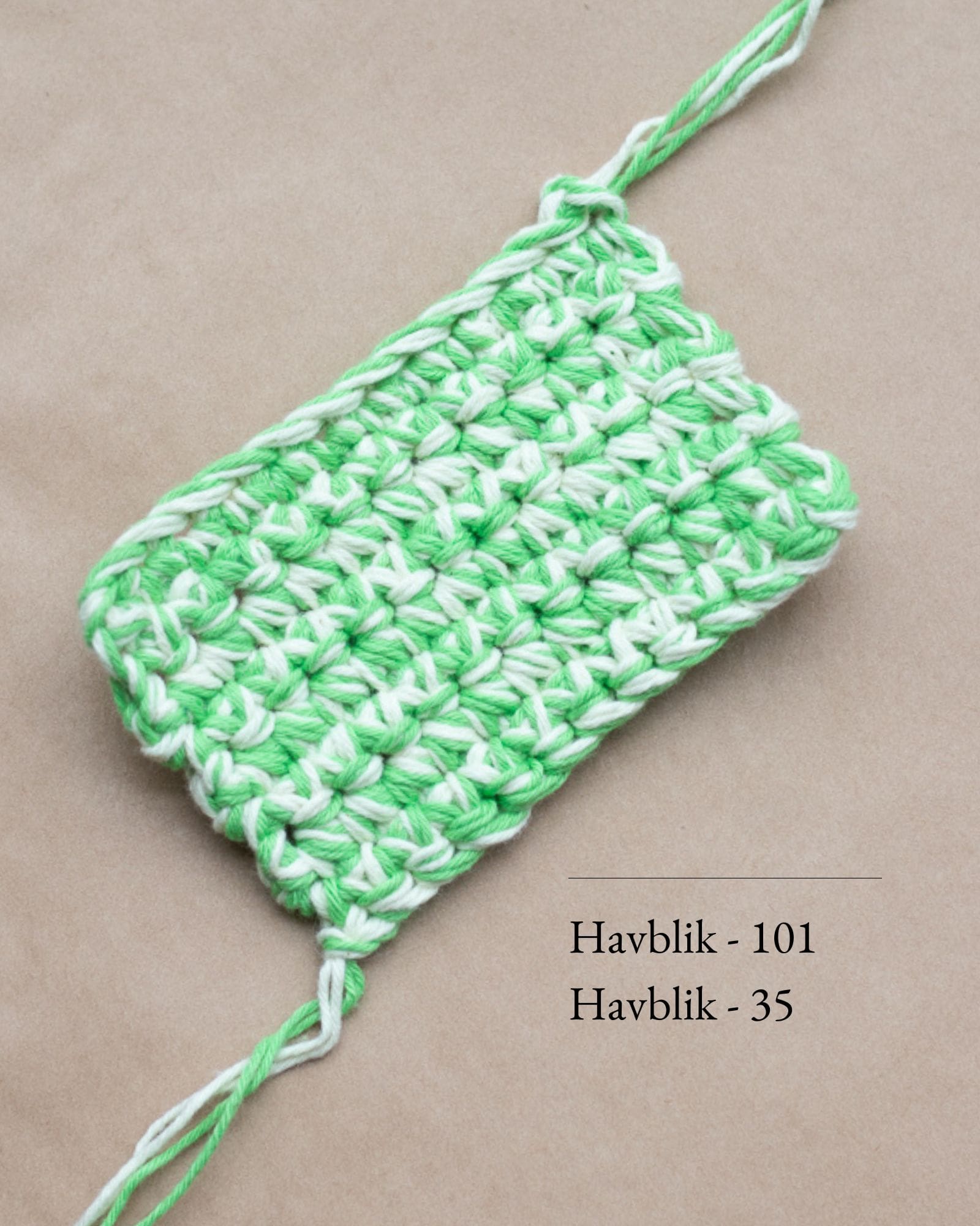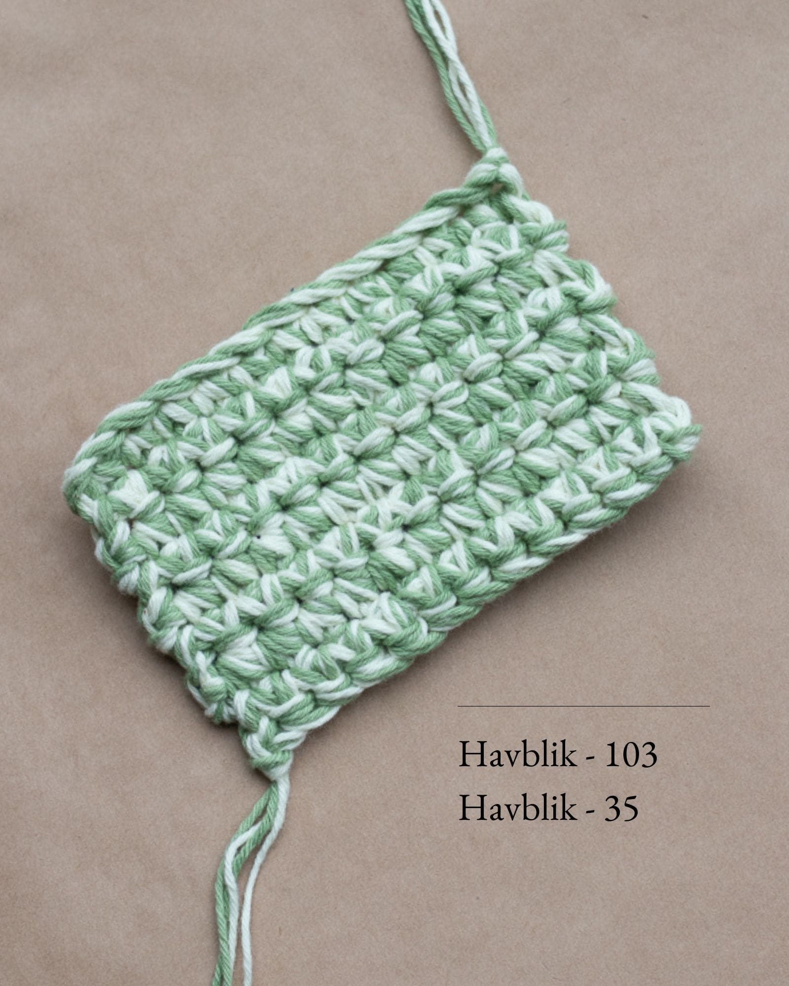 Garn: Havblik fra Tante Grøn, 100 % bomuld (100 g = 275 m).