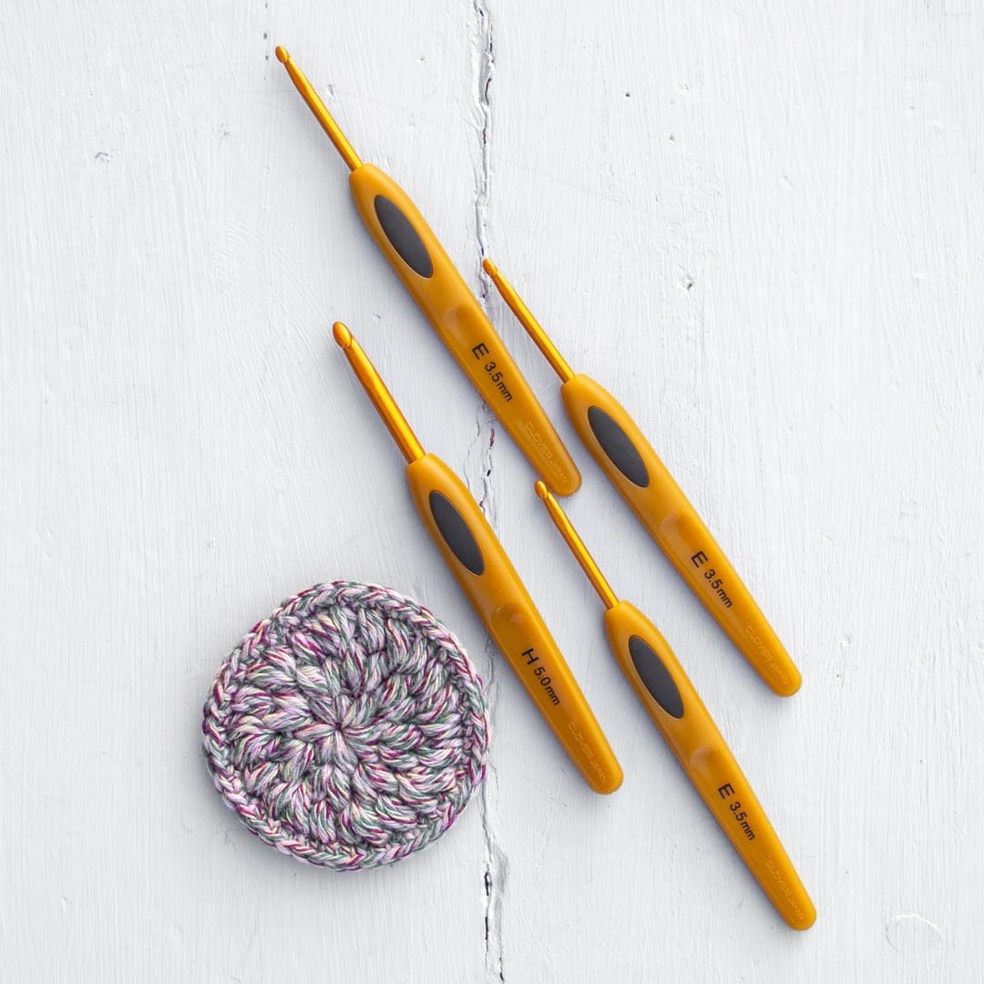 En hæklenål som er behagelig at hækle med. Hæklenålen er formet ergonomisk korrekt, så man kan hækle i længere tid.