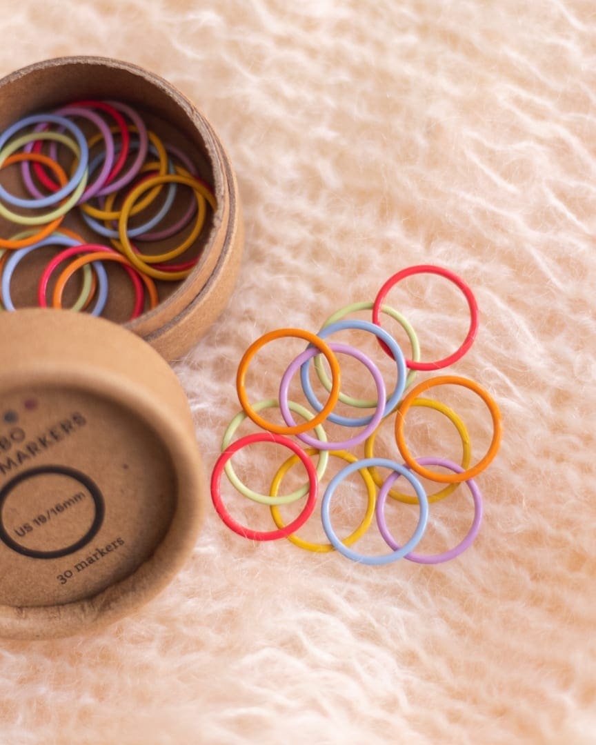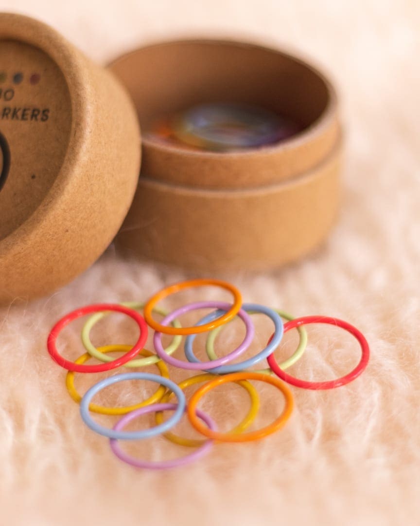 Disse fra Cocoknits er lavet af stål. De kommer i 6 forskellige farver, hvilket er super praktisk når du skal markere forskellige ting i dit strikketøj.
