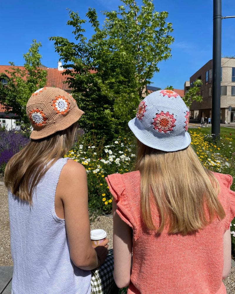 Martha har designet en sød, smuk og meget elegant bøllehat, som kan bruges henover sommeren. Den er designet med samme smukke oldemorsfirkanter med blomstermotiv, som I allerede kender fra tidligere til Daisy Bag. Konstruktionen er enkel, så selv nyopstartede hæklere har mulighed for at være med!