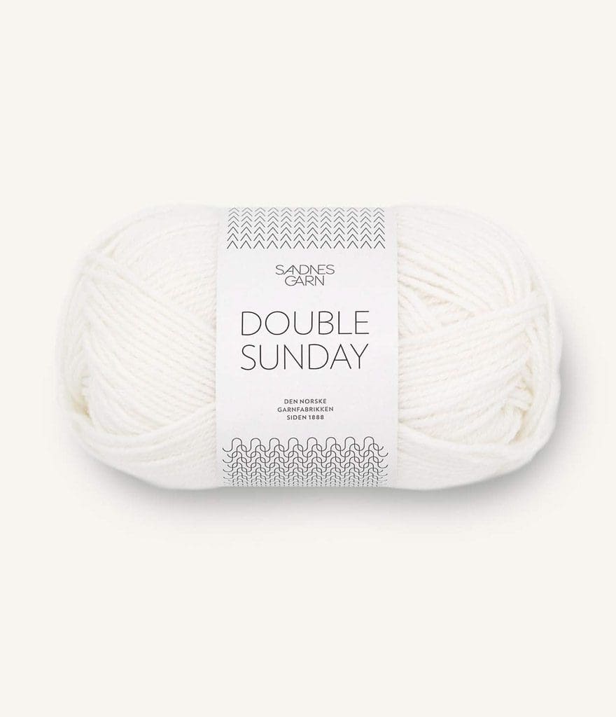 Double Sunday er en tykkere version af den velkendte Sunday merinould. Double Sunday er til pinde 3,5-4 og er en skøn blød 100 % merinould. Du kan bruge Double Sunday til børnestrik, voksenstrik og så er den særdeles fin stikket sammen med Silk Mohair.