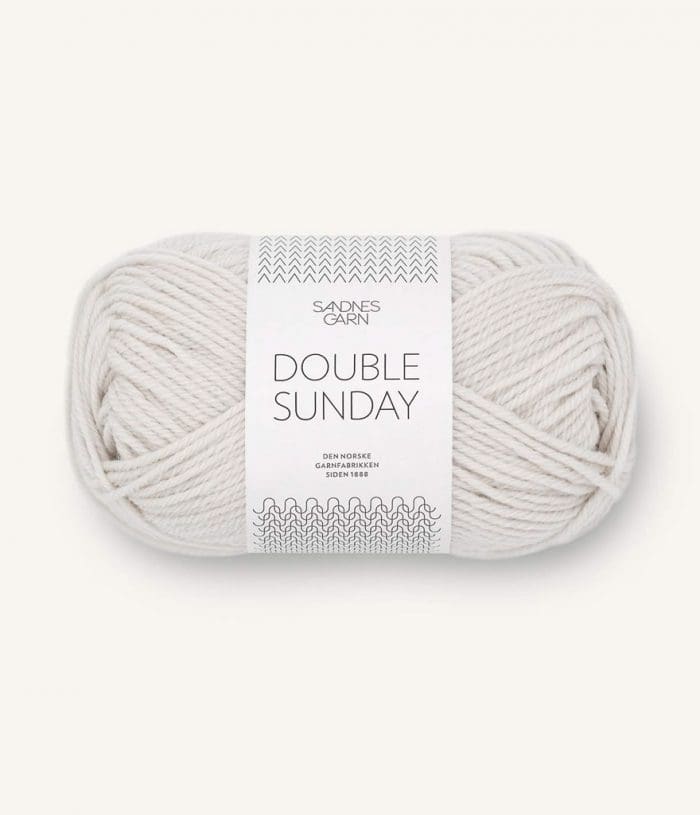 Double Sunday er en tykkere version af den velkendte Sunday merinould. Double Sunday er til pinde 3,5-4 og er en skøn blød 100 % merinould. Du kan bruge Double Sunday til børnestrik, voksenstrik og så er den særdeles fin stikket sammen med Silk Mohair.