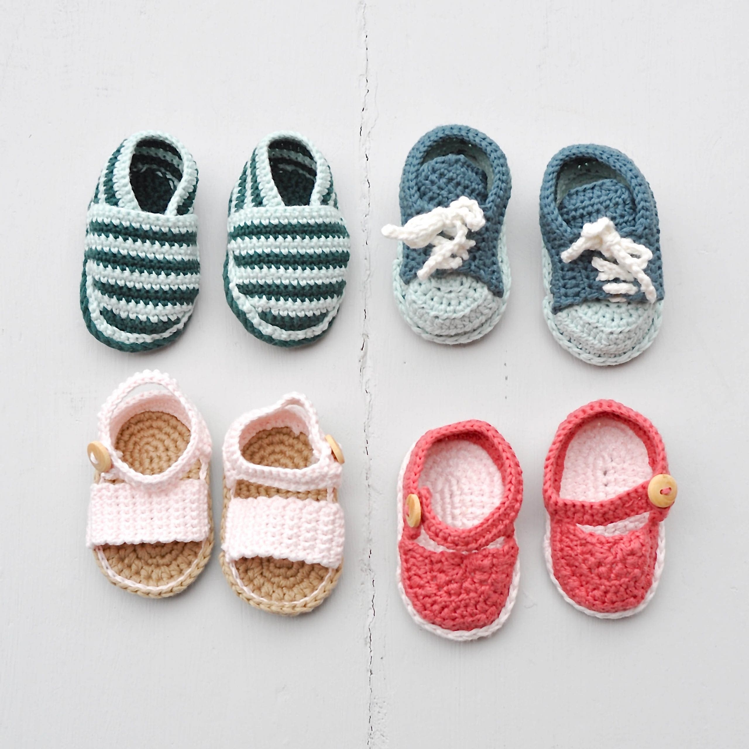 Opskriften er med alle 4 par sko: Kondisko, sandaler, espadrilles og pigesko.