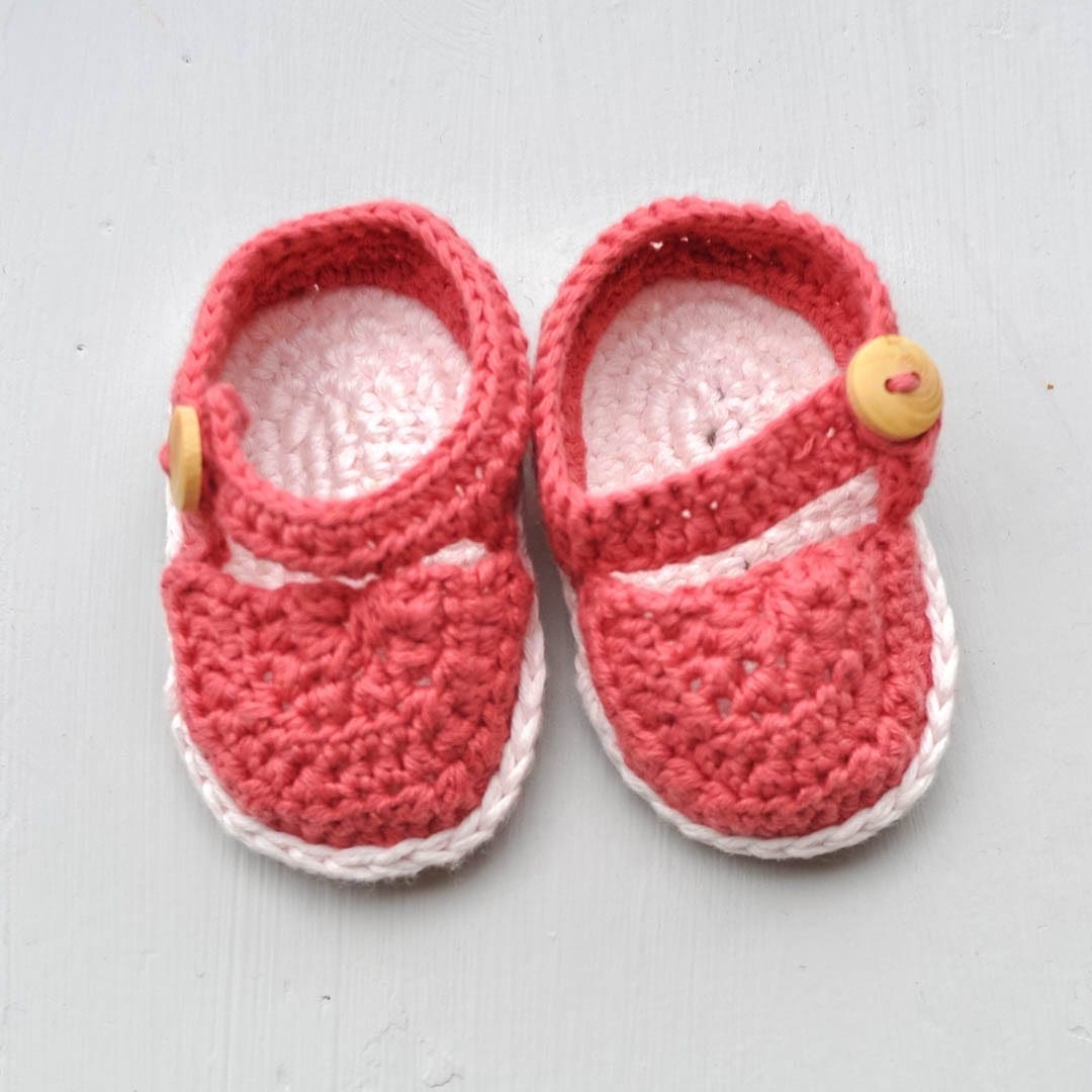 De fine små sko til dukker er hæklet i Blomsterfrø med hæklenål nr. 2 og 3.