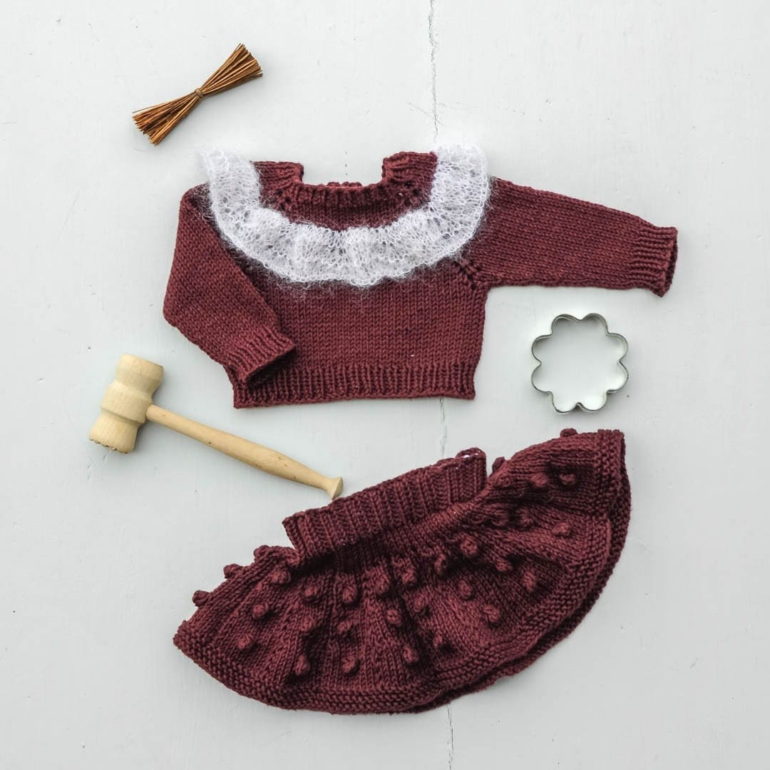 Opskriften indeholder bluse med flæse i to størrelser samt en skøn nederdel med bobler i to størrelser.