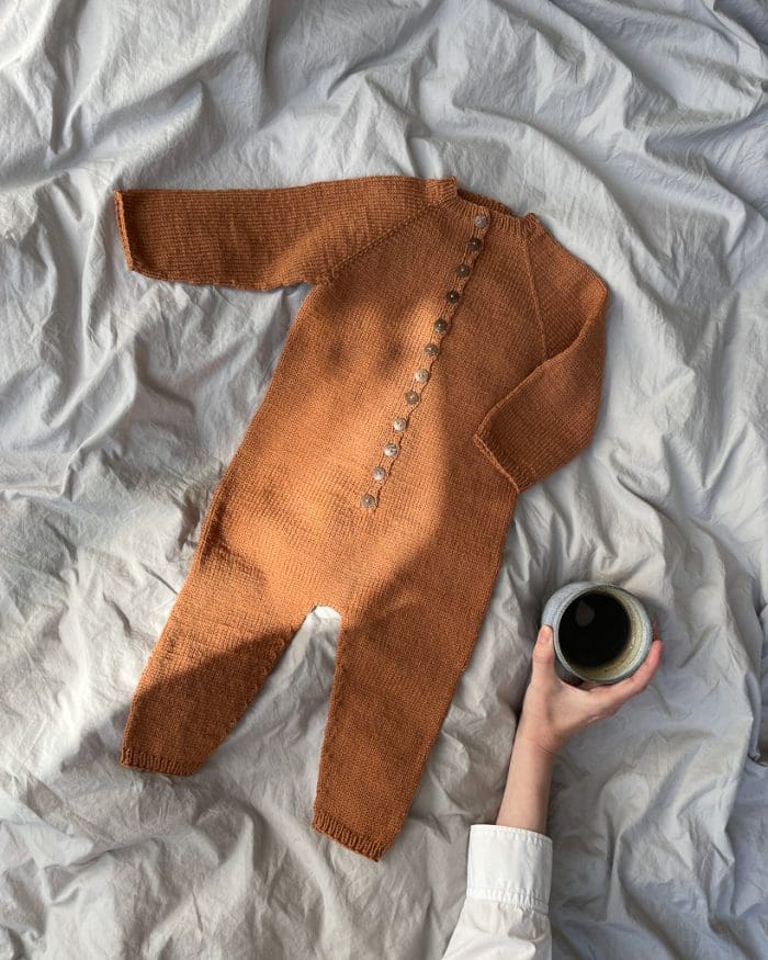 Eddie Suit er en klassisk heldragt strikket i glatstrik med knapper fortil.