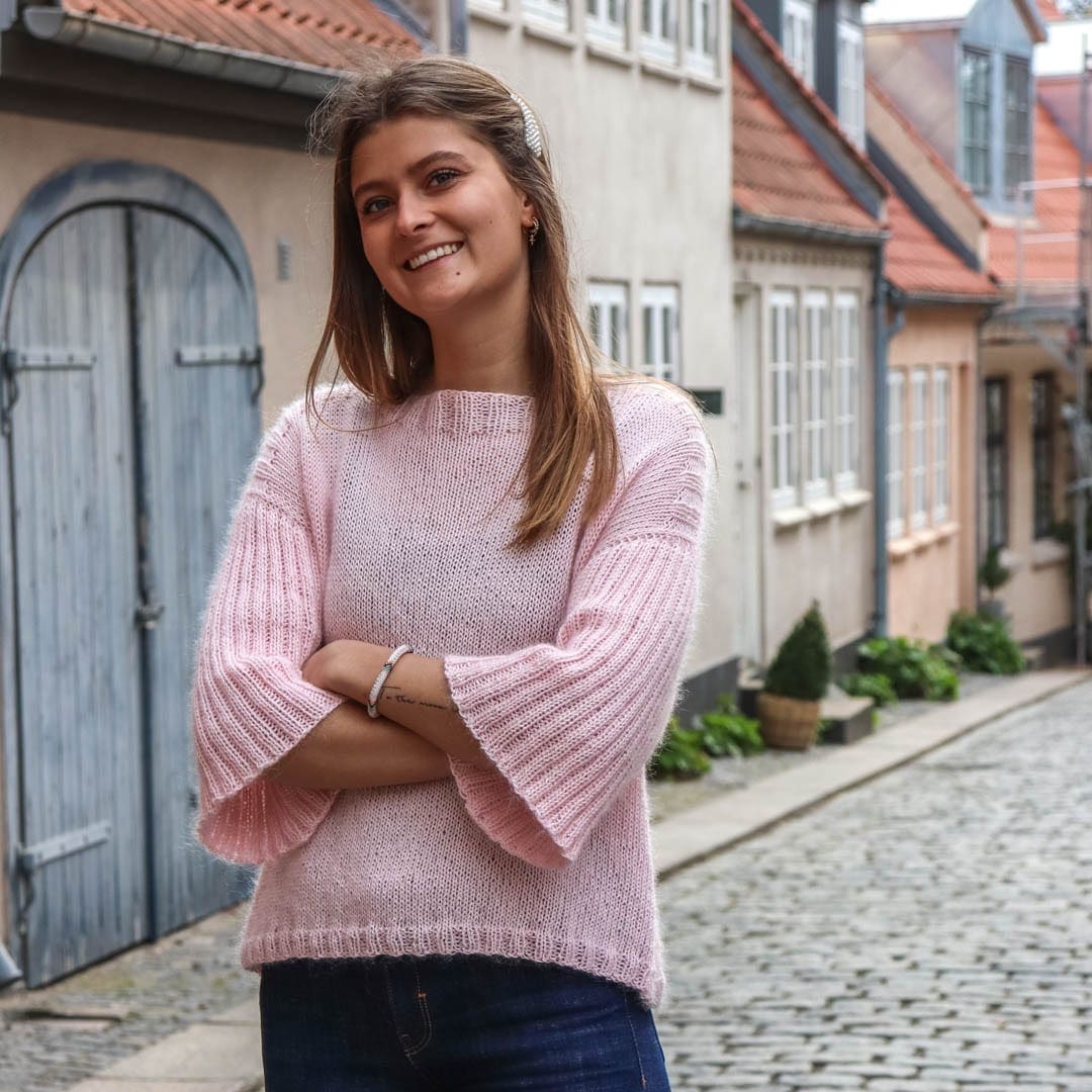 Ellen er en oversize sweater med 3/4 ærmer i rib. Den er strikket i en tråd Bio Blomsterfrø og en tråd mohair. Kombinationen gør sweateren blød og luftig. Sweateren strikkes nede fra og op på rundpind. Sweateren er enkel at strikke og uden svære teknikker. Da sweateren er oversize. Se gerne størrelsesguiden, så du får valgt den rigtige størrelse.