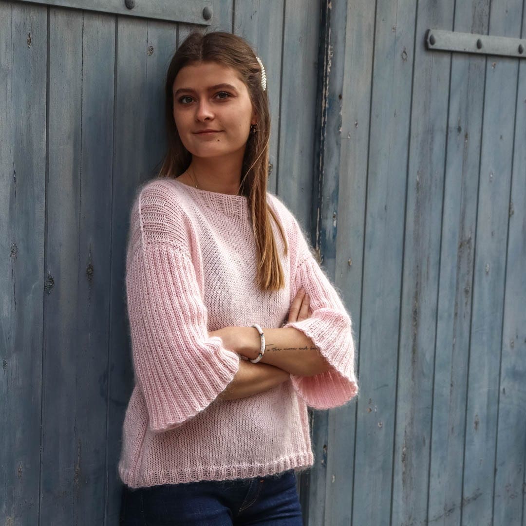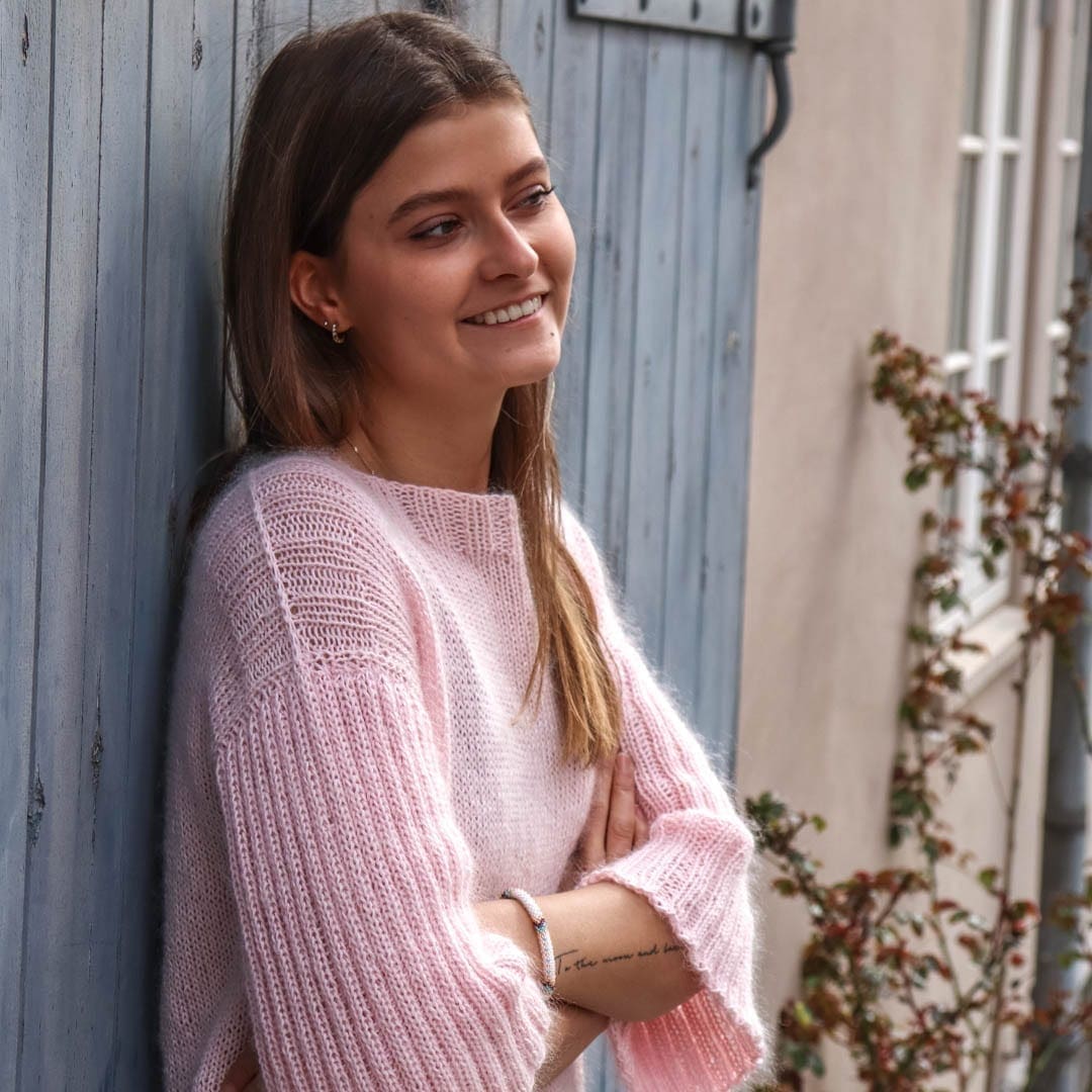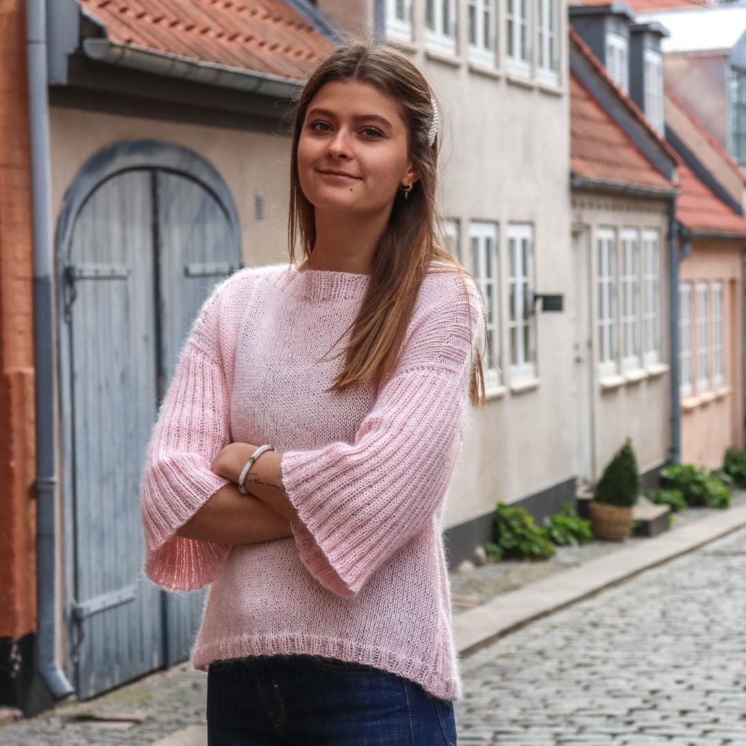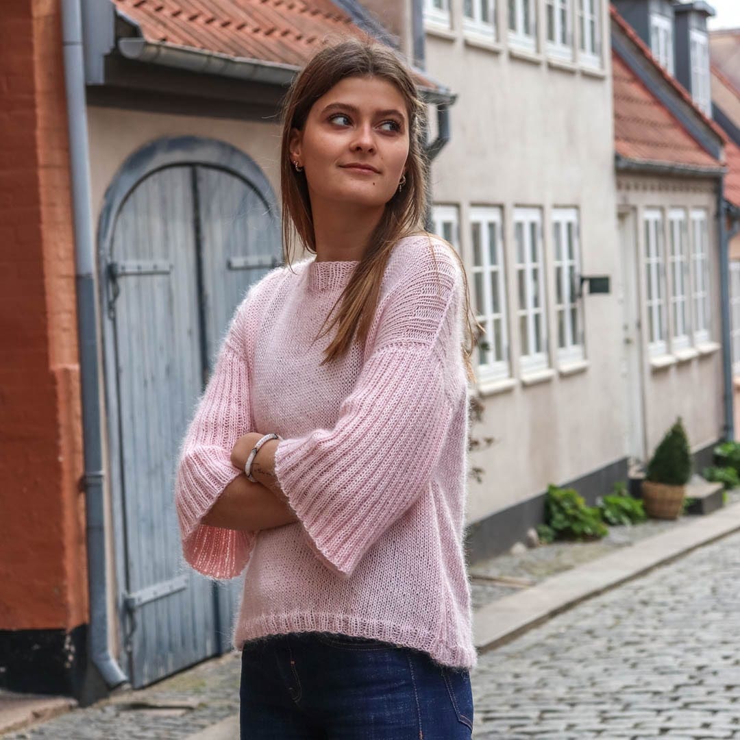 Ellen er en oversize sweater med 3/4 ærmer i rib. Den er strikket i en tråd Bio Blomsterfrø og en tråd mohair. Kombinationen gør sweateren blød og luftig. Sweateren strikkes nede fra og op på rundpind. Sweateren er enkel at strikke og uden svære teknikker. Da sweateren er oversize. Se gerne størrelsesguiden, så du får valgt den rigtige størrelse.