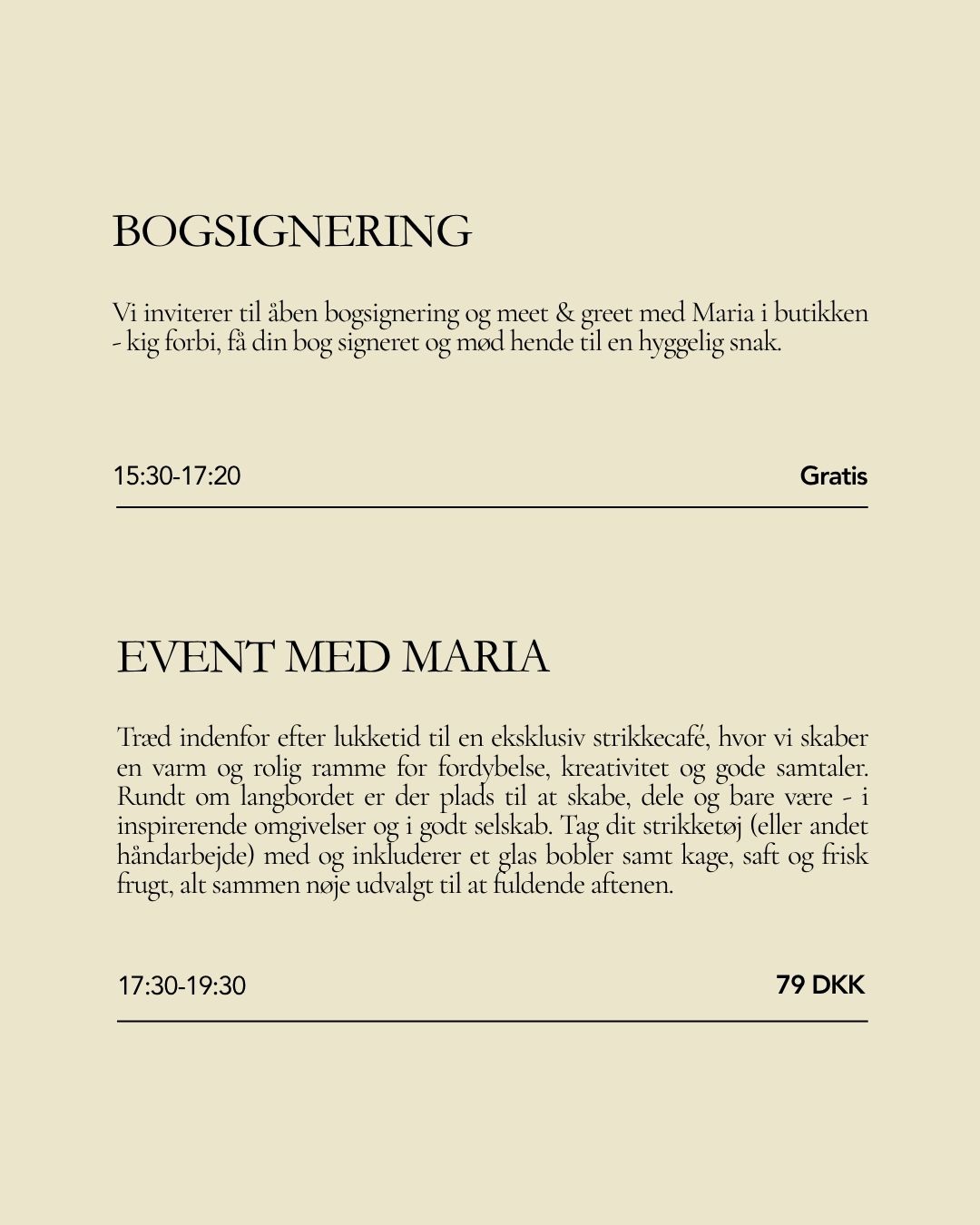 Bonus: Tidligere på dagen (kl. 15:30–17:20) har du mulighed for at møde Maria til en åben bogsignering og meet & greet i butikken, hvor alle er velkomne.
