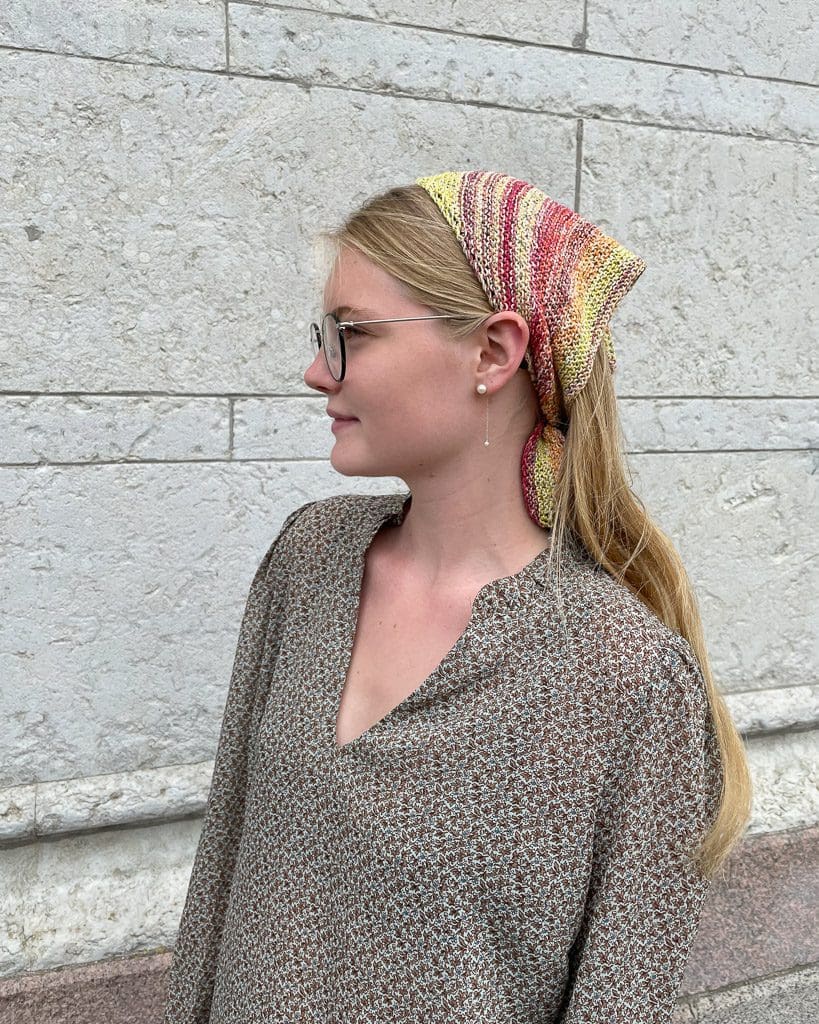 Field Bandana er en simpel men fin lille accessory, som både kan bruges som et lilletørklæde om halsen eller i håret. Opskriften er begyndervenlig, og kan nemttilpasses i forhold til størrelse og garnkvalitet. Ønskes en støre størrelse, fortsættesmønsteret blot og tilregn ekstra nøgler garn efter behov.