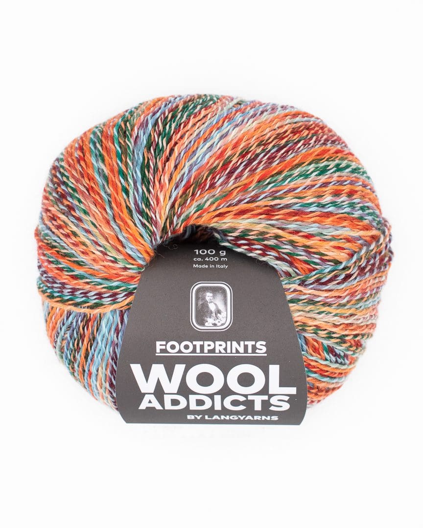Footprints er oprindeligt tiltænkt som et strømpegarn, men med den interessante blanding af bomuld, uld og polyamid er det et alsidigt garn, som nemt kan bruges i andre projekter som en sweater eller taske. Derudover er Footprints superwash behandlet, hvilket betyder, at det roligt kan tåle en tur på uldprogrammet i vaskemaskinen, og dermed også trygt kan sendes med i daginstitutionerne.