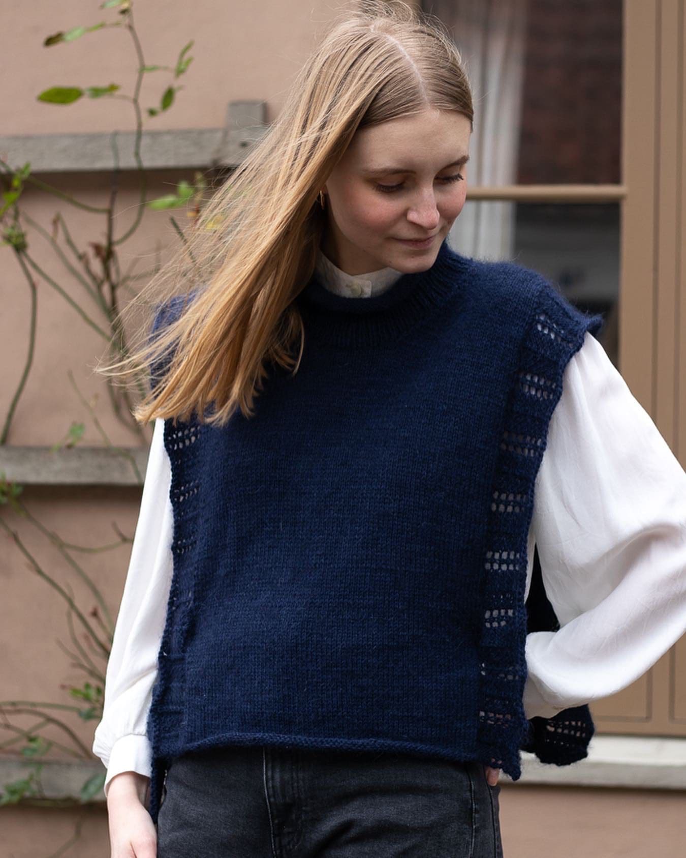 Garden Vest is a simple and elegant vest with fine lace edges that add a feminine look. The vest is knitted in a delicate combination of Merino wool and Silk Mohair.