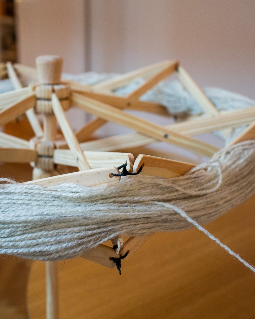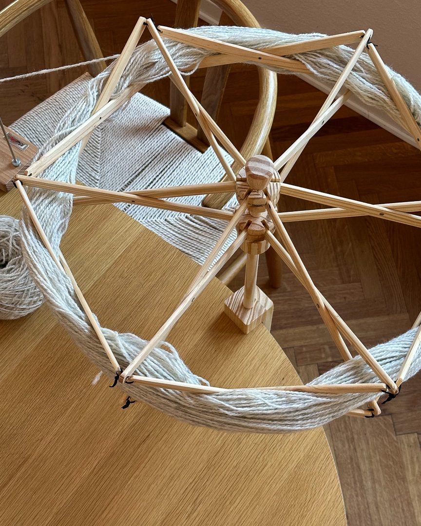 Denne garnvinde er lavet i lyst fyrretræ, som giver et naturligt og let udtryk. Den er behagelig at arbejde med og passer perfekt sammen med et krydsnøgleapparat, hvis du ønsker en jævn og pæn garnnøgle.