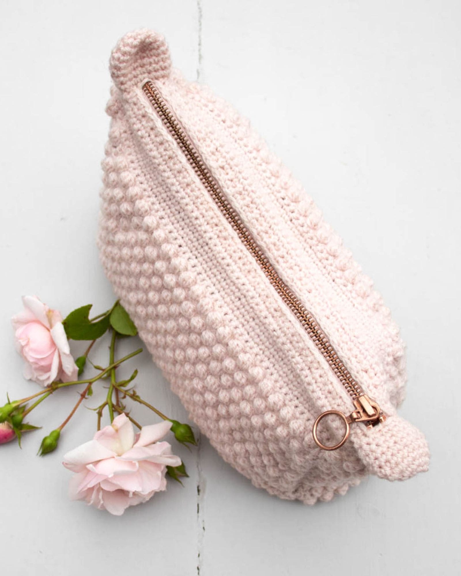 Den hæklede clutch har en dejlig rummelig form, så du kan opbevare alt fra nøgler til småting på en stilfuld måde. Størrelsen er perfekt til at have med under armen, uanset hvor du skal hen.