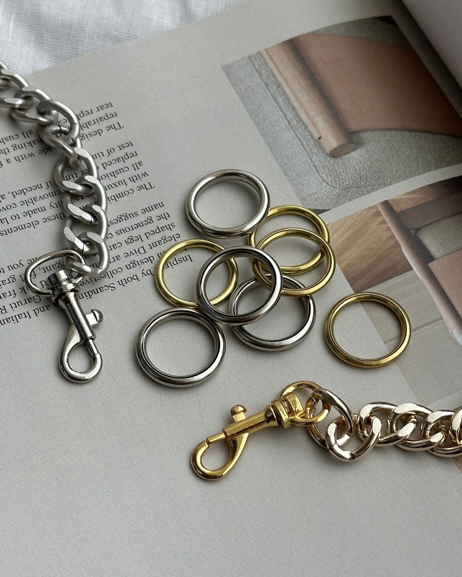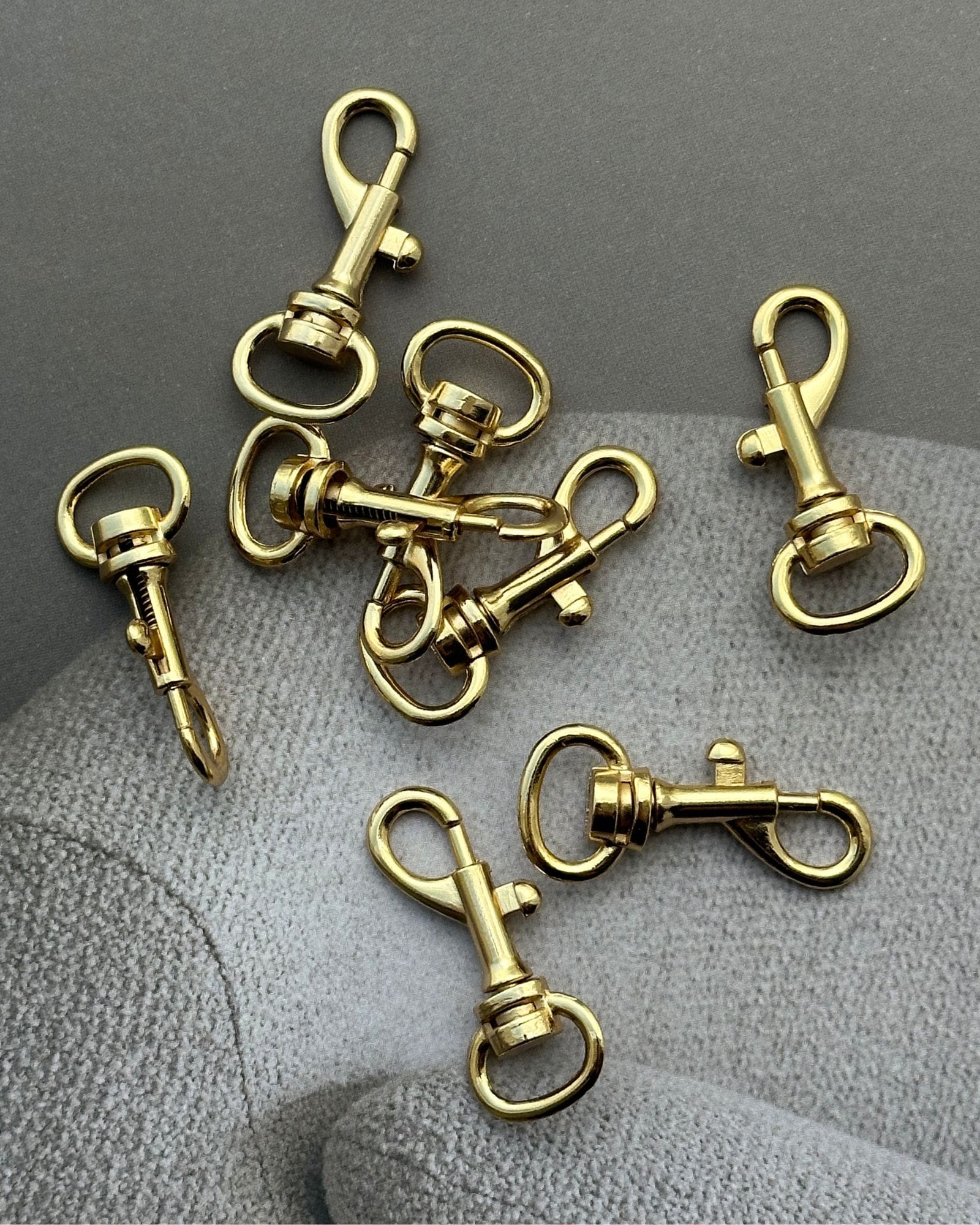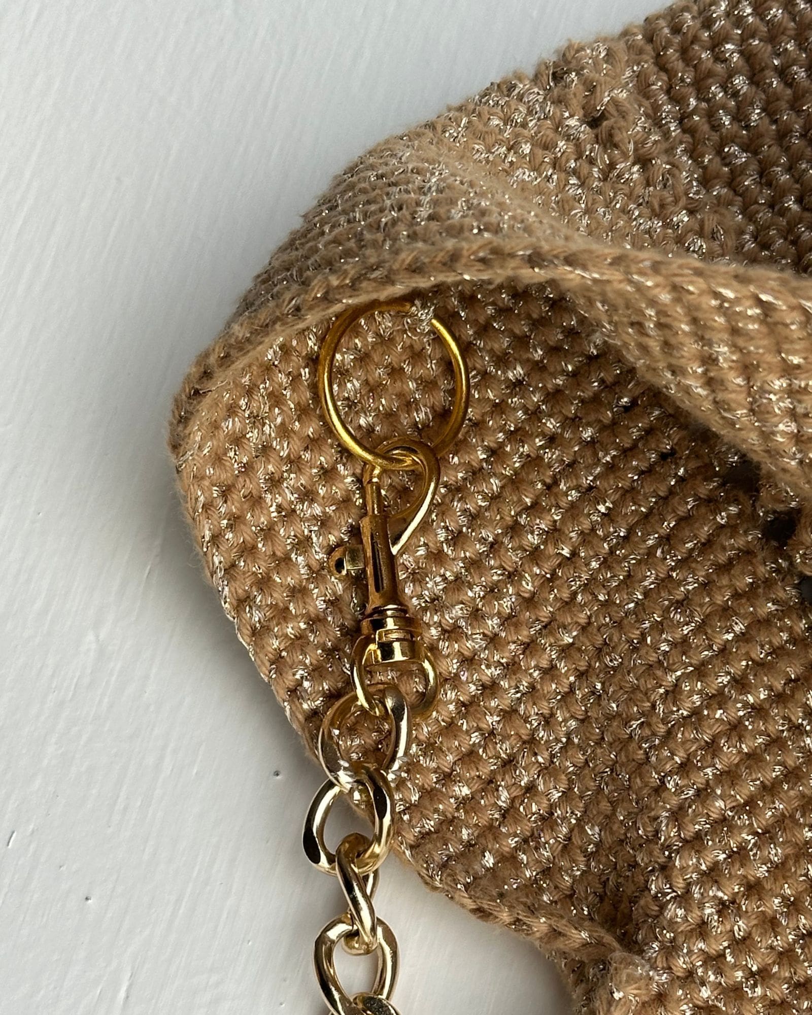 Vi har bl.a. brugt karabinhager til Charlotte Bag, som er den fine taske med tilhørende clutch. Du finder opskriften lige her.
