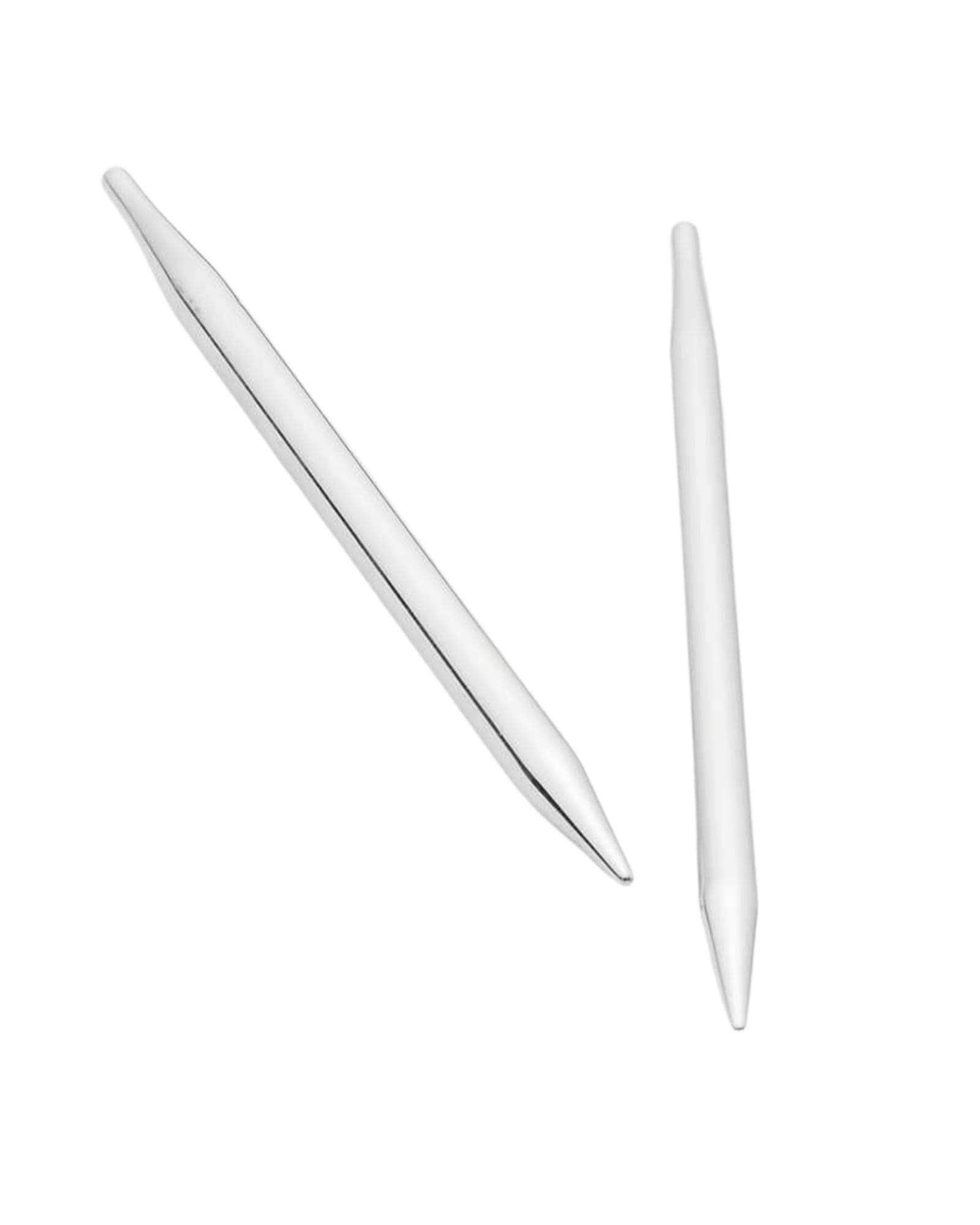 Pindespidserne er spidse i enden, som gør dem helt ideelle til alle strikkeprojekter, da du nemt kan gribe om garnet. Pindespidserne er produceret i messing, som giver dig minimal slitage og ingen risiko for knækkede pinde.