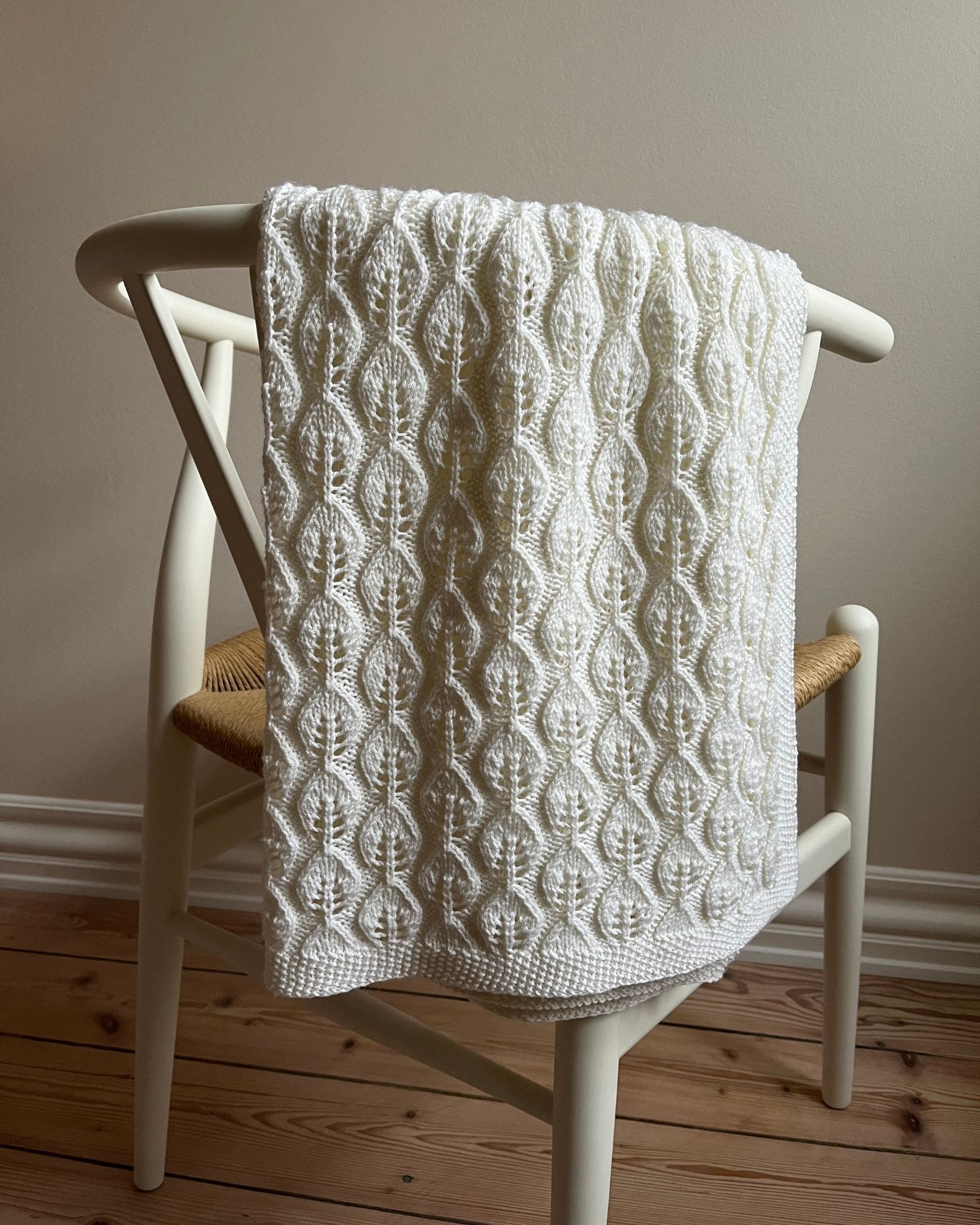Lene Holme Samsøe – Bella Tæppe – Dette produkt indeholder opskrift og garn Tæppet med det fine bladmønster er meget enklere at strikke end man vil tro.