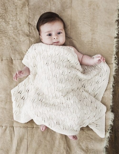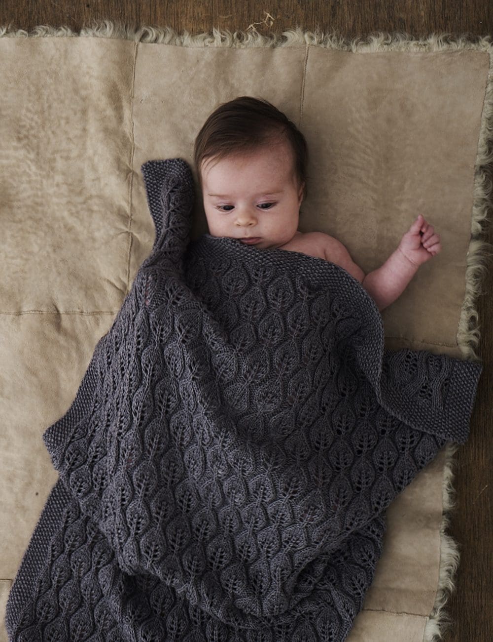 Lene Holme Samsøe – Bella Tæppe – Dette produkt indeholder opskrift og garn Tæppet med det fine bladmønster er meget enklere at strikke end man vil tro.