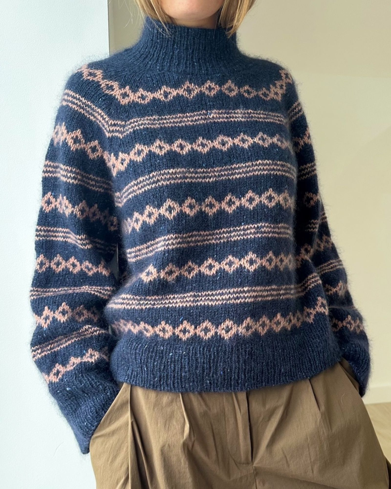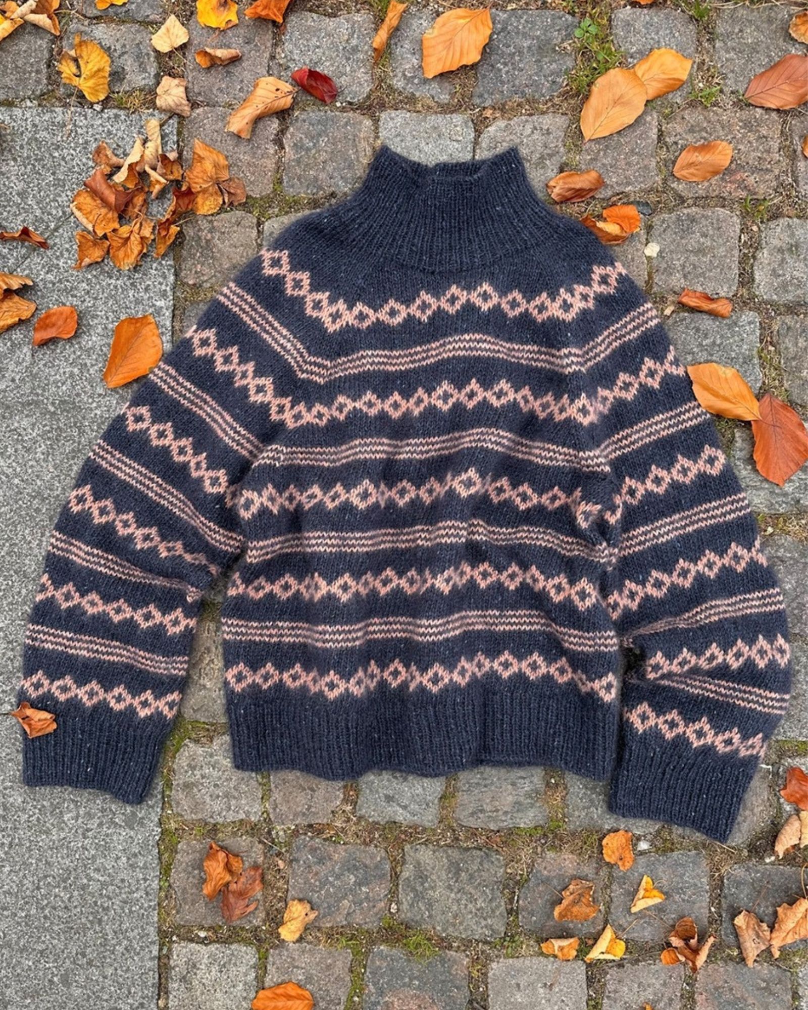 Husk: Bundfarven er 1 tråd Tweed og 1 tråd Silk Mohair. Mønsterfarven er 2 tråde Spinni og 1 tråd Silk Mohair.