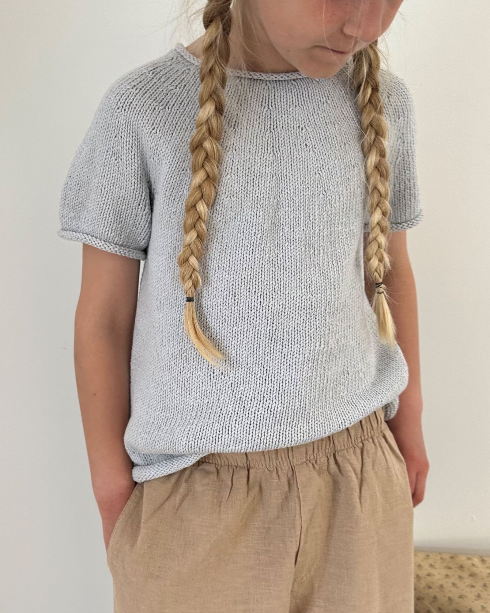 Havblik: (200) 200 (200) 200 (200) 300 g. Skal du strikke t-shirten længere anbefales det at tilkøbe et ekstra nøgle til str. 8 år og 10 år.