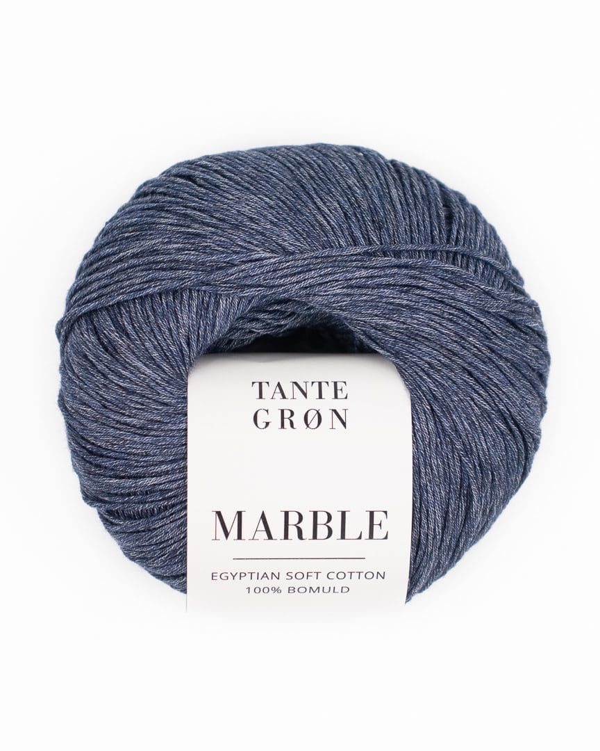 Det er sjældent at finde melerede bomuldsgarner, der er så bløde og lækre som Marble. Den er spundet af to nært beslægtede nuancer, hvilket giver et smukt tone-i-tone meleret udtryk. Det diskrete farvespil er inspirationen bag navnet Marble, som leder tankerne hen på marmorens elegante og naturlige struktur. Resultatet er et eksklusivt og levende garn, uden at være dominerende.
