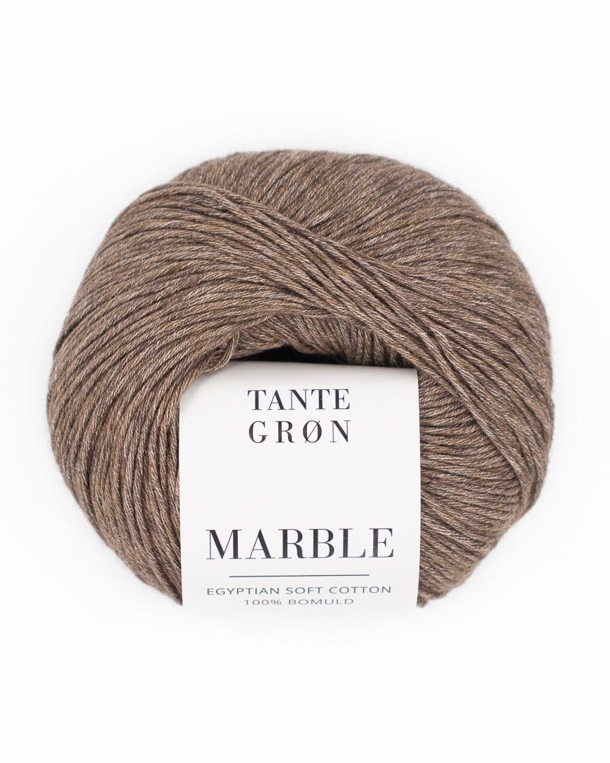 Det er sjældent at finde melerede bomuldsgarner, der er så bløde og lækre som Marble. Den er spundet af to nært beslægtede nuancer, hvilket giver et smukt tone-i-tone meleret udtryk. Det diskrete farvespil er inspirationen bag navnet Marble, som leder tankerne hen på marmorens elegante og naturlige struktur. Resultatet er et eksklusivt og levende garn, uden at være dominerende.