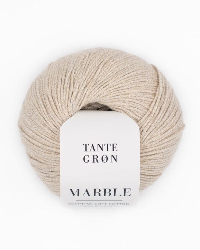 Det er sjældent at finde melerede bomuldsgarner, der er så bløde og lækre som Marble. Den er spundet af to nært beslægtede nuancer, hvilket giver et smukt tone-i-tone meleret udtryk. Det diskrete farvespil er inspirationen bag navnet Marble, som leder tankerne hen på marmorens elegante og naturlige struktur. Resultatet er et eksklusivt og levende garn, uden at være dominerende.