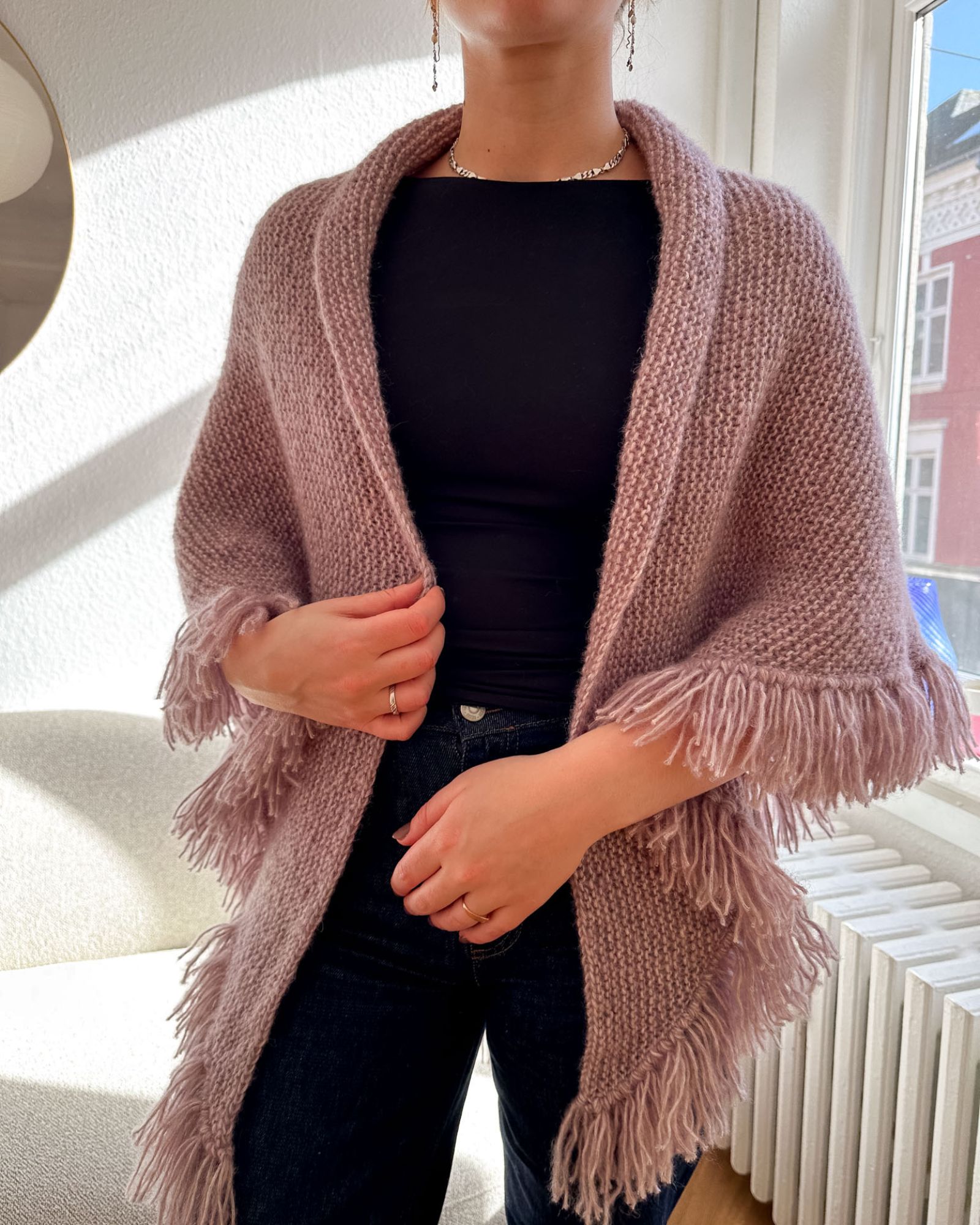 Sjalet er meget begyndervenligt, og strikkes udelukkende med retmasker og udtagninger.