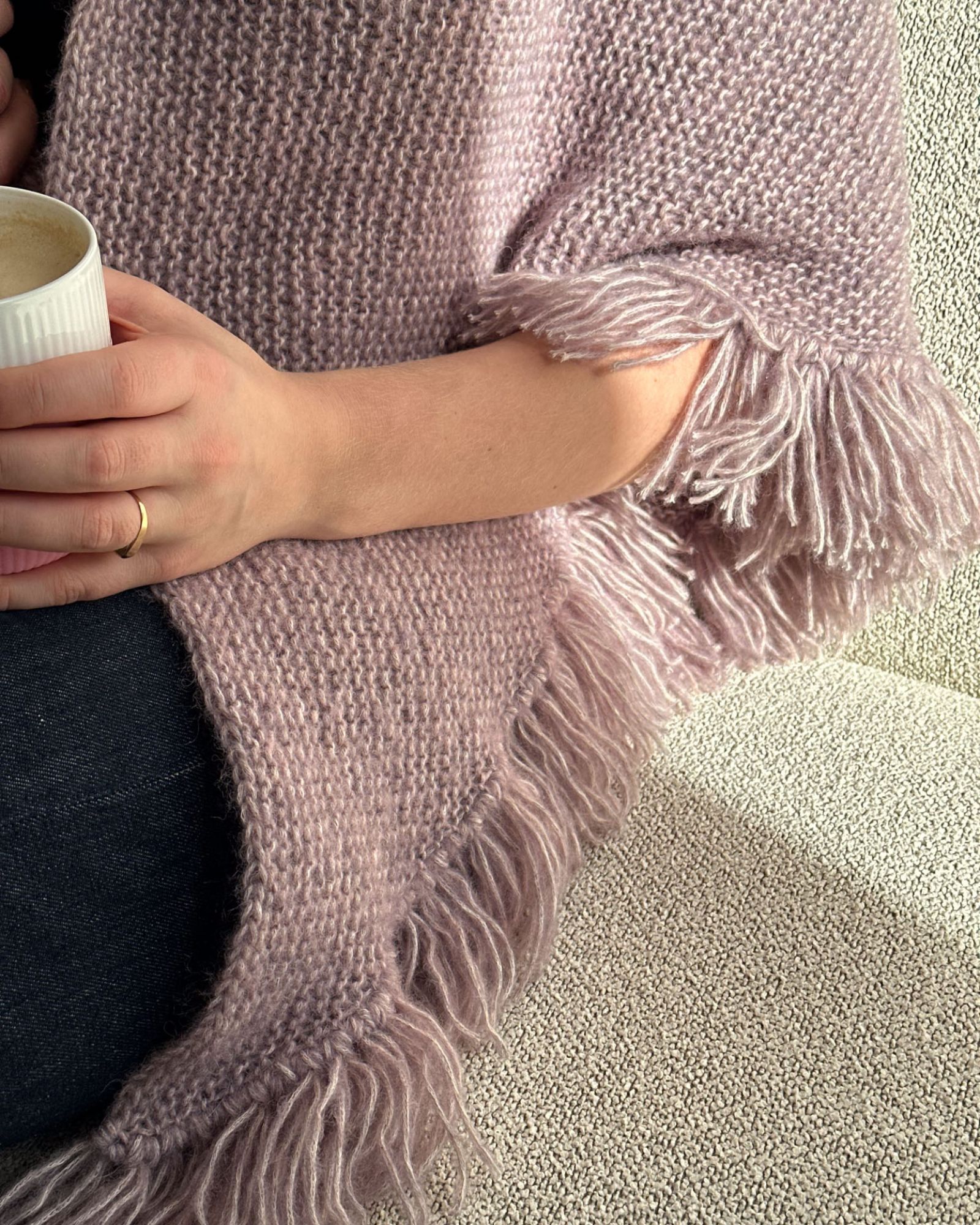Marianne Sjalet er strikket i det bløde Moon fra Tante Grøn eller Snefnug-garn fra CaMaRose og er perfekt at tage med i sommerhuset, bruge i sofaen eller varme sig med en kølig regnvejrsdag. De fine frynser giver både ekstra længde og et dekorativt udtryk. Sjalet strikkes frem og tilbage på en rundpind nr. 6, hvilket skaber en tæt, blød og lun struktur. Opskriften er enkel og nem at gå til – ideel for både nye og erfarne strikkere. Vil du sætte dit eget præg, kan frynserne strikkes i en kontrastfarve for et personligt twist.