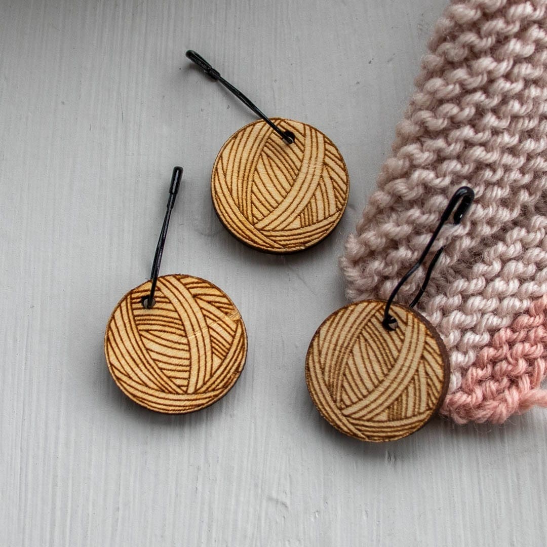 Denne maskemarkør er med garnnøgle motiv i eg og prisen er for ét stk.