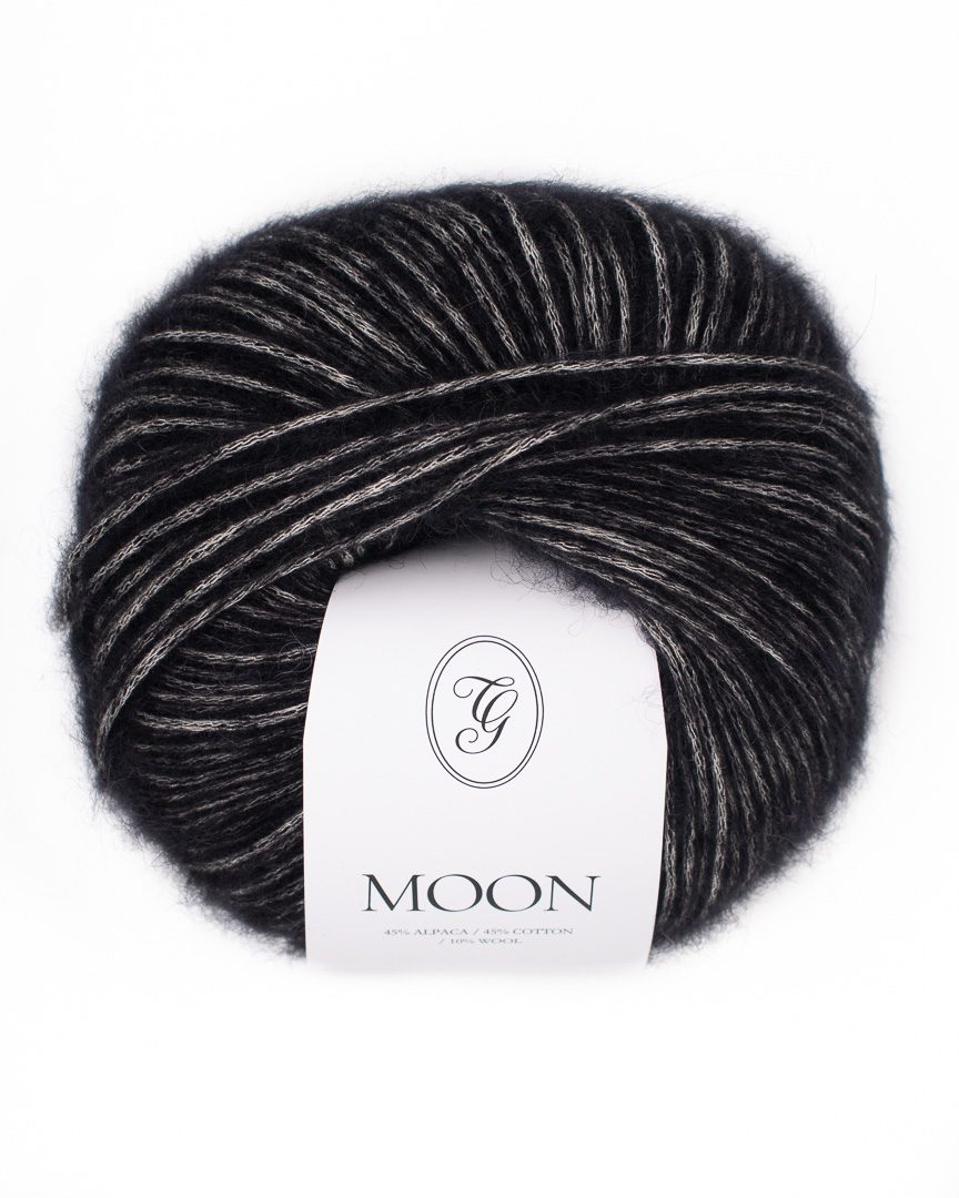 Det hvide bomuldsnet i garnets kerne er blæst fyldt med fine fibre af alpaka og uld. Resultatet er en unik, let meleret struktur, hvor farverne får et diskret spil og et levende udtryk, som om du har strikket med flere tråde i samme tone. Når du strikker med Moon, samler fibrene sig smukt, og det færdige resultat får et roligt, elegant udtryk med et blødt og harmonisk farvespil.