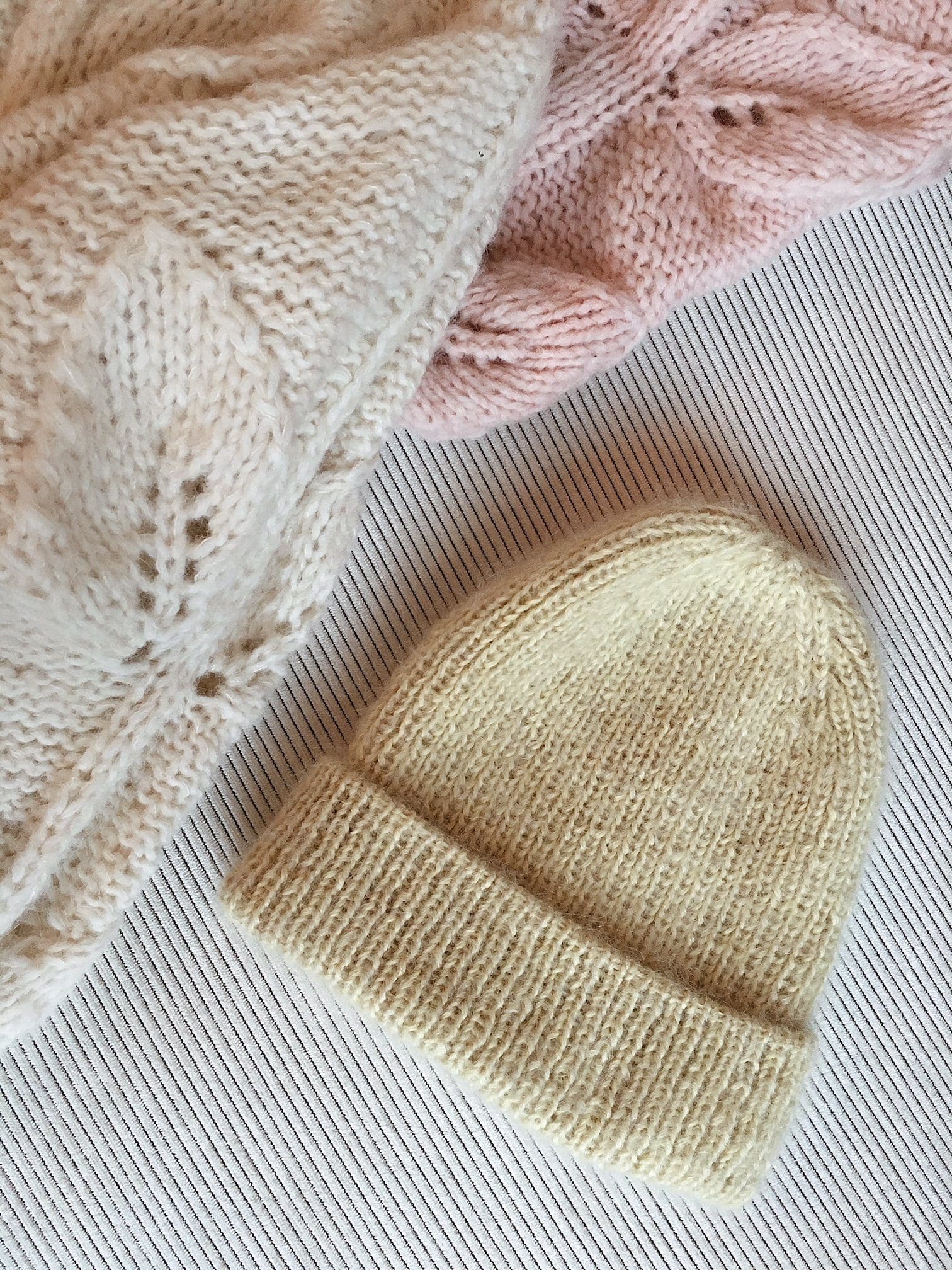 Beanie No. 2 er en klassisk ribstrikket hue. Den kan strikkes enten i den klassiske uld version eller i en ’mohair edition’. Huen strikkes i omgange på rundpind og afsluttes med magic loop metoden ved indtagningerne. Der slås masker op med italiensk opslag, for en smuk afslutning på huens ribkant.