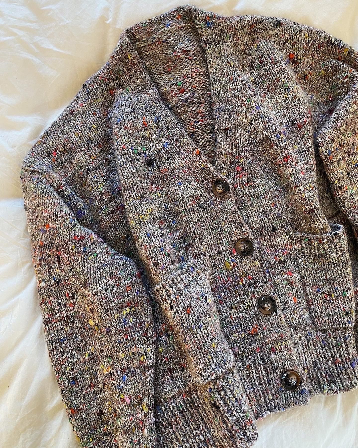 Cardigan No. 8 er oversize cardigan med v-hals og lommer.