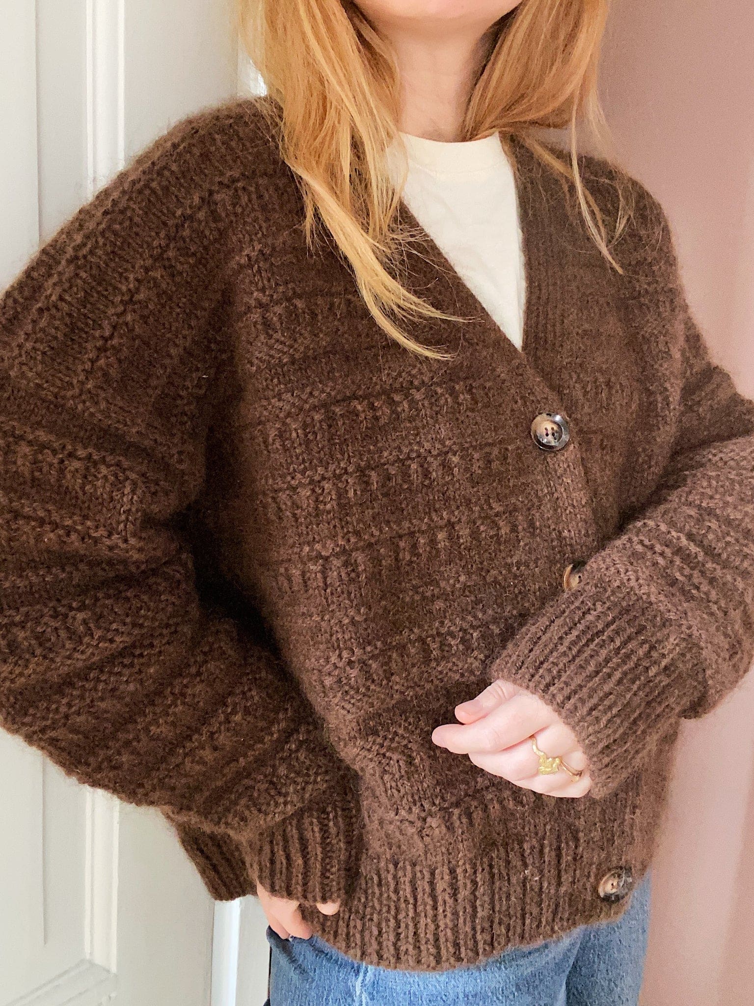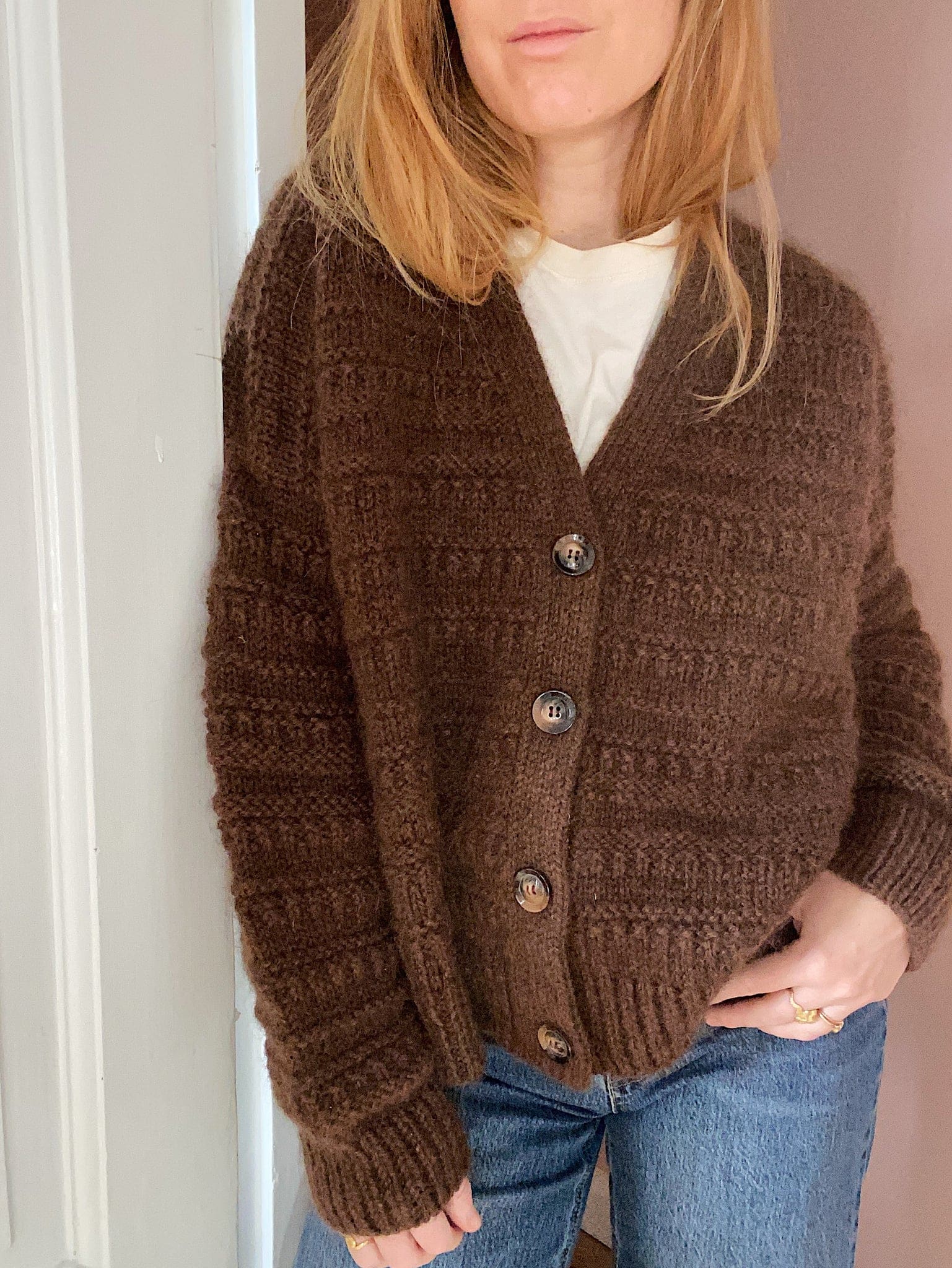 My Favourite Things Knitwear Jacket No. 1 har en oversize pasform. Beregn et bevægelsesrum på ca. 25-30 cm. i forhold til dit brystmål.