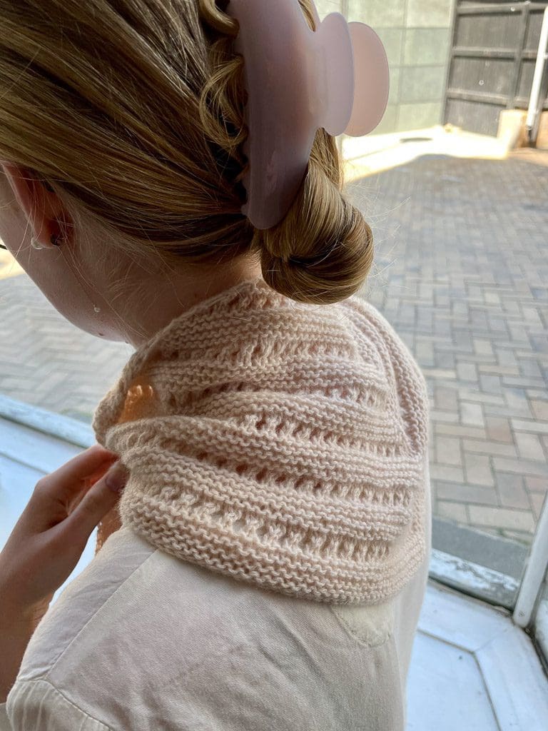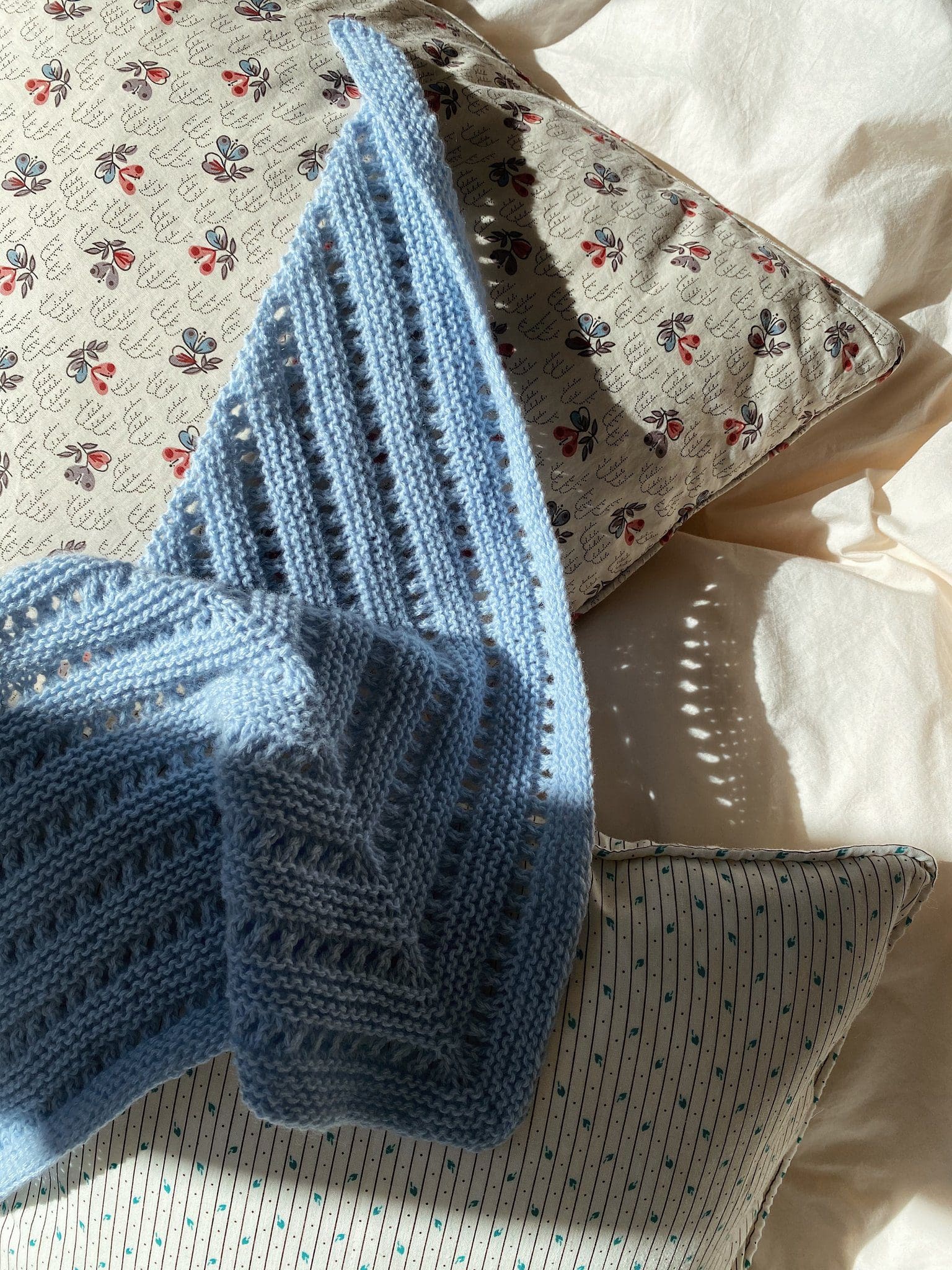 Scarf No. 1 strikkes oppefra og ned i et fint og enkelt hulmønster.