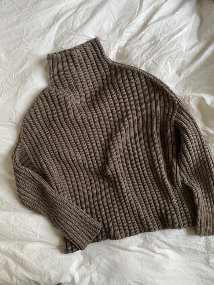 Sweater No. 8 fra My Favourite Things Knitwear er en oversize bluse med tætsiddende ærmer og høj hals.